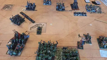 So konnte ich zunächst nicht angreifen und die 3 Ogre Crossbows in den Reihen des Feindes dezimierten meine Orks unentwegt.
