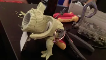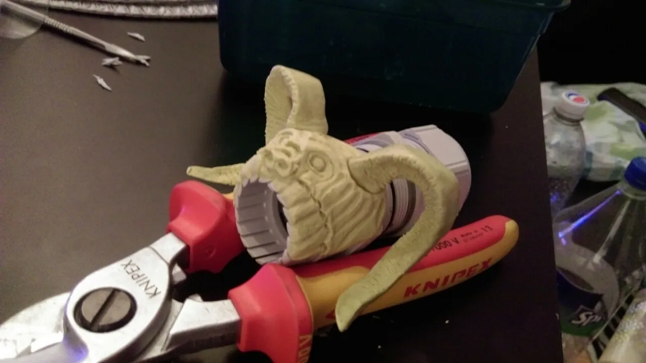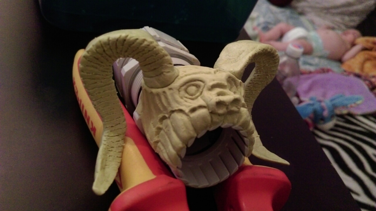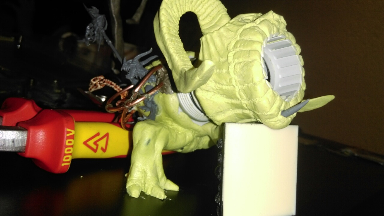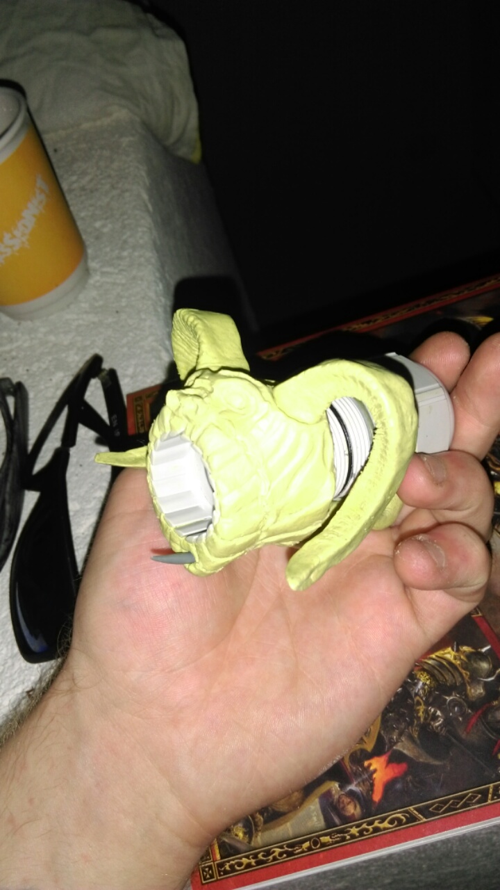In das Loch vorne kommt noch ne 2. Reihe Zähne, der Körper wird richtig dick ähnlich gr Verpester. Das gewinde welches in der Mitte der Röhre ist soll frei bleiben von Modelliermasse, wird dann später mWn Energie-Seelen-Zwirbel :D