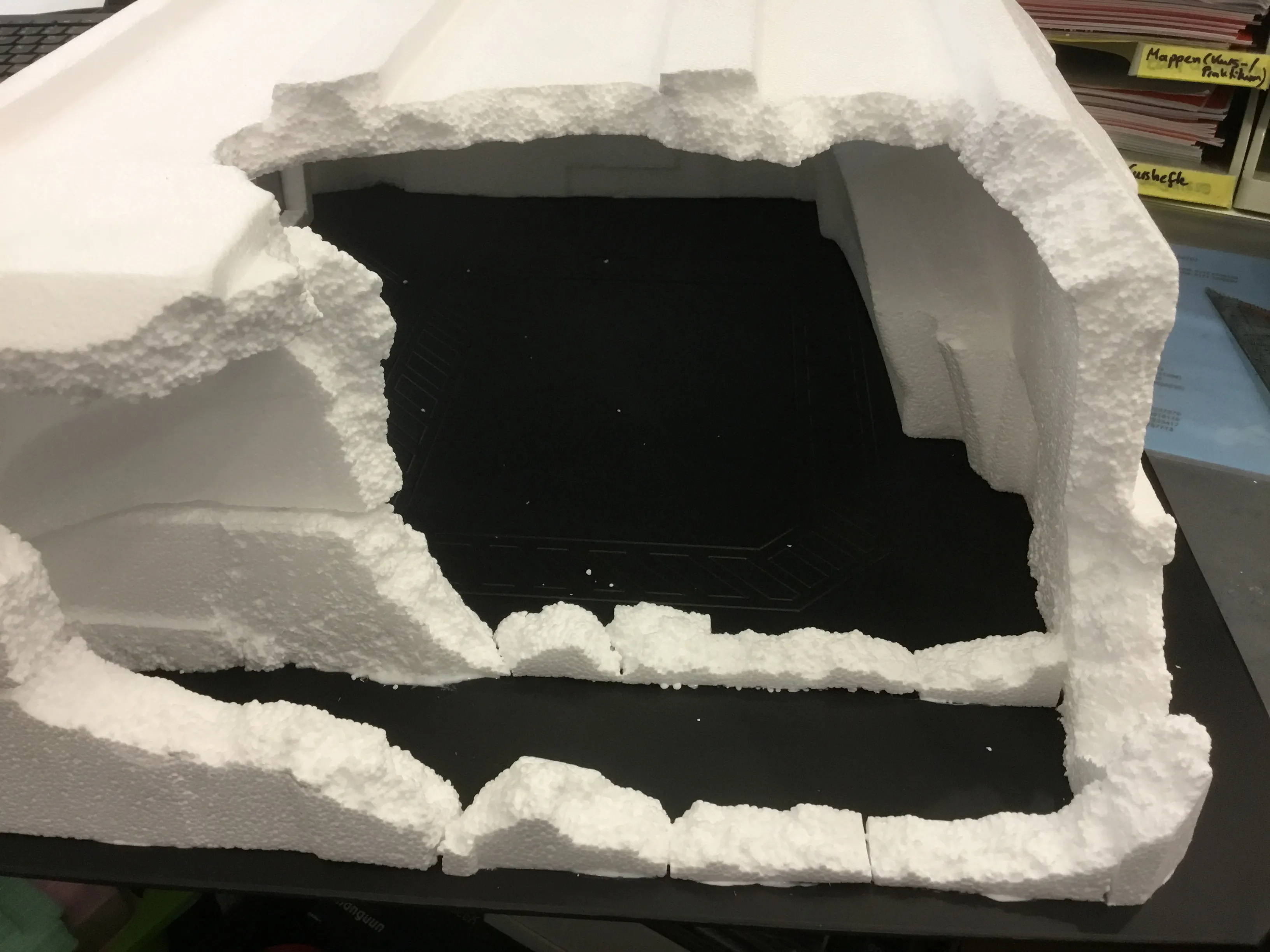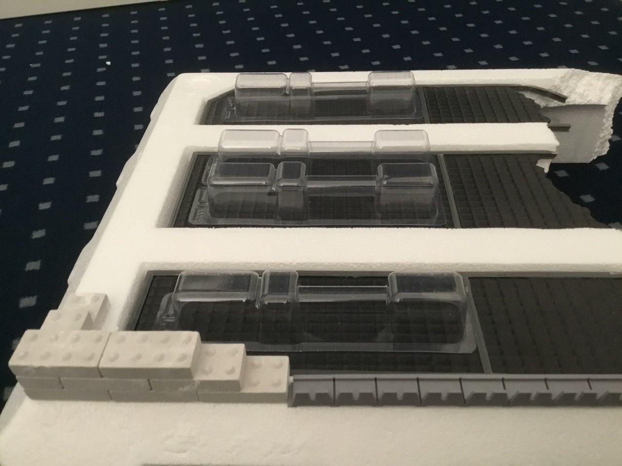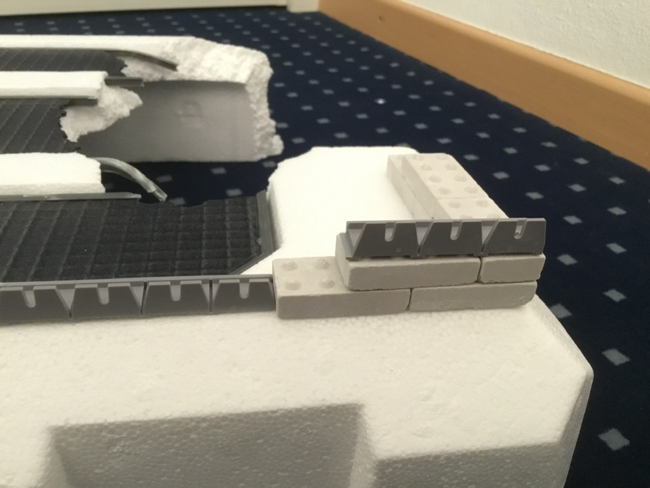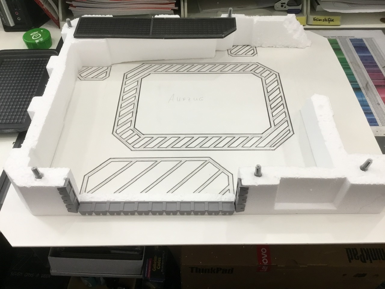 Ursprünglich wollte ich nur ein Styroporteil nutzen, aber ich musste feststellen, dass dann die meisten Fahrzeuge und Läufer nicht reinpassen würden... Aber seht selbst.