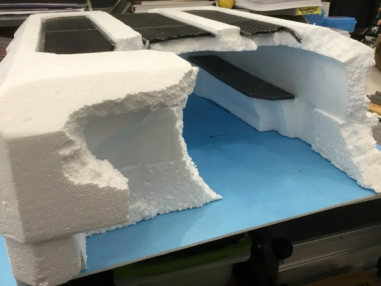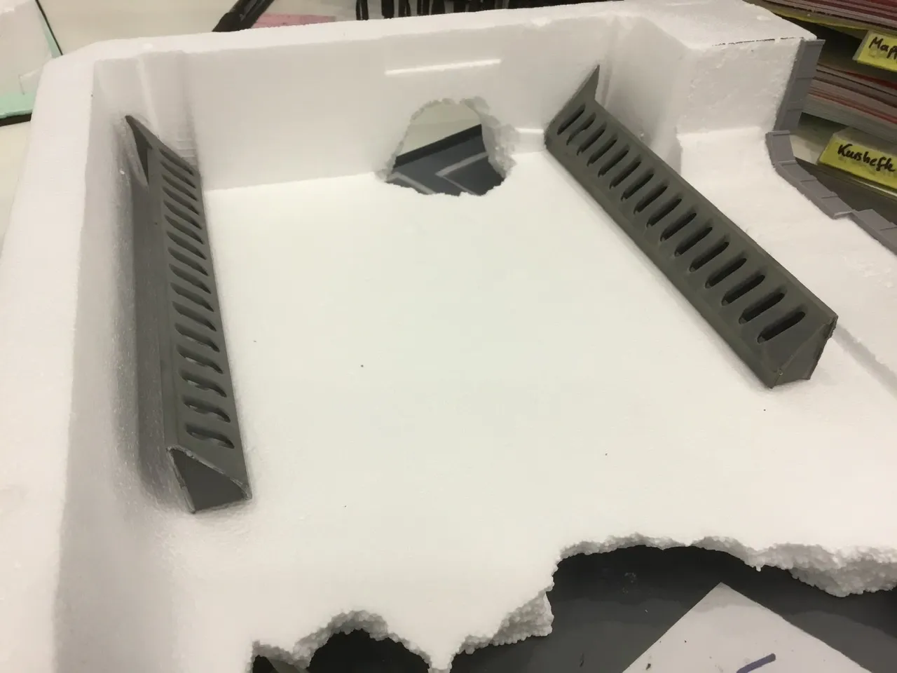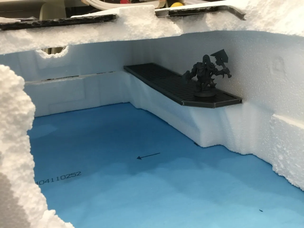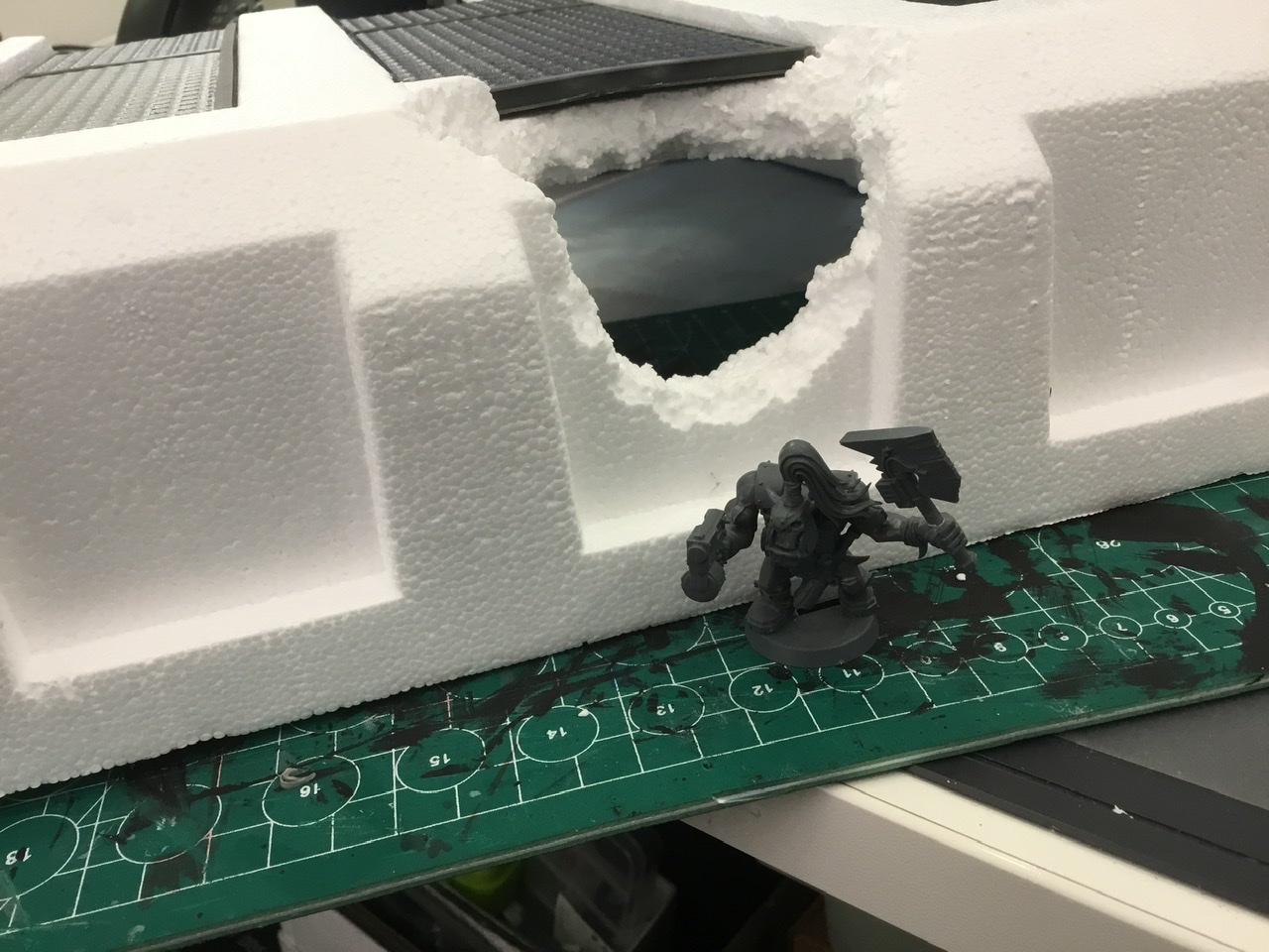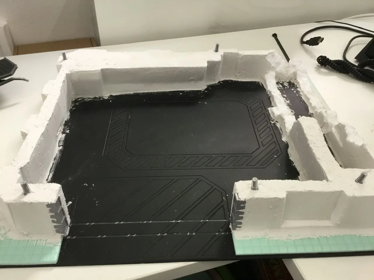 Ursprünglich wollte ich nur ein Styroporteil nutzen, aber ich musste feststellen, dass dann die meisten Fahrzeuge und Läufer nicht reinpassen würden... Aber seht selbst.