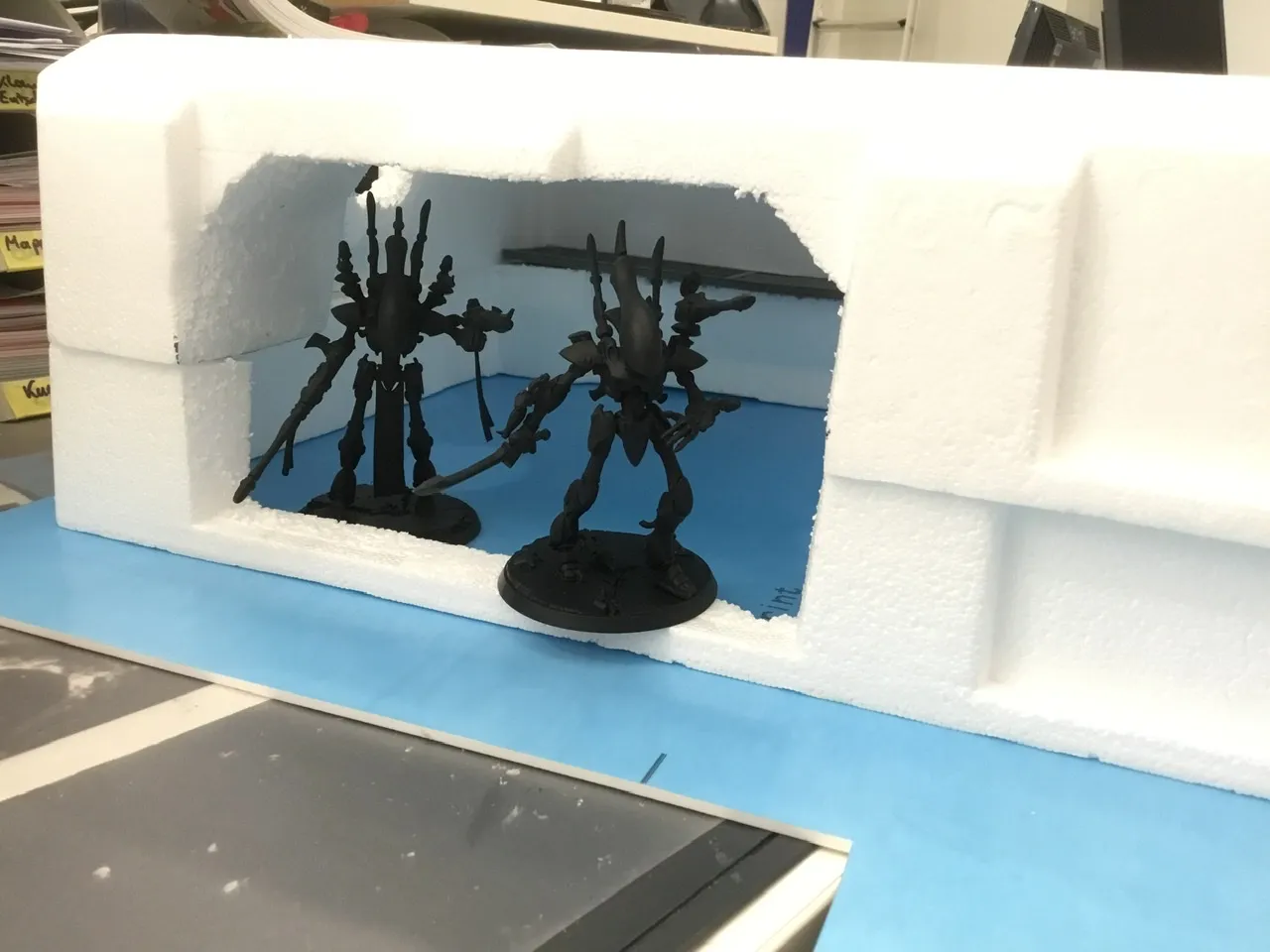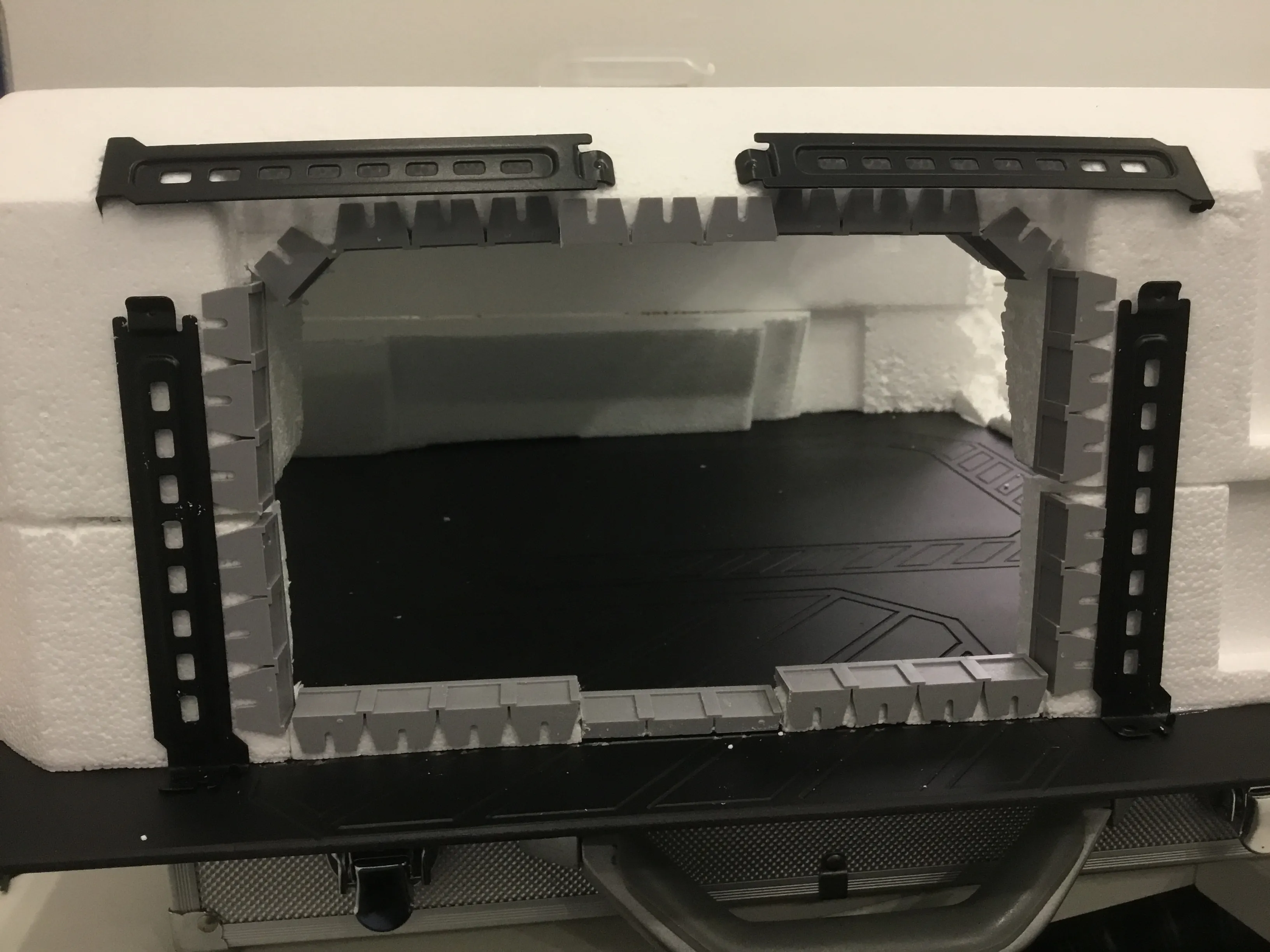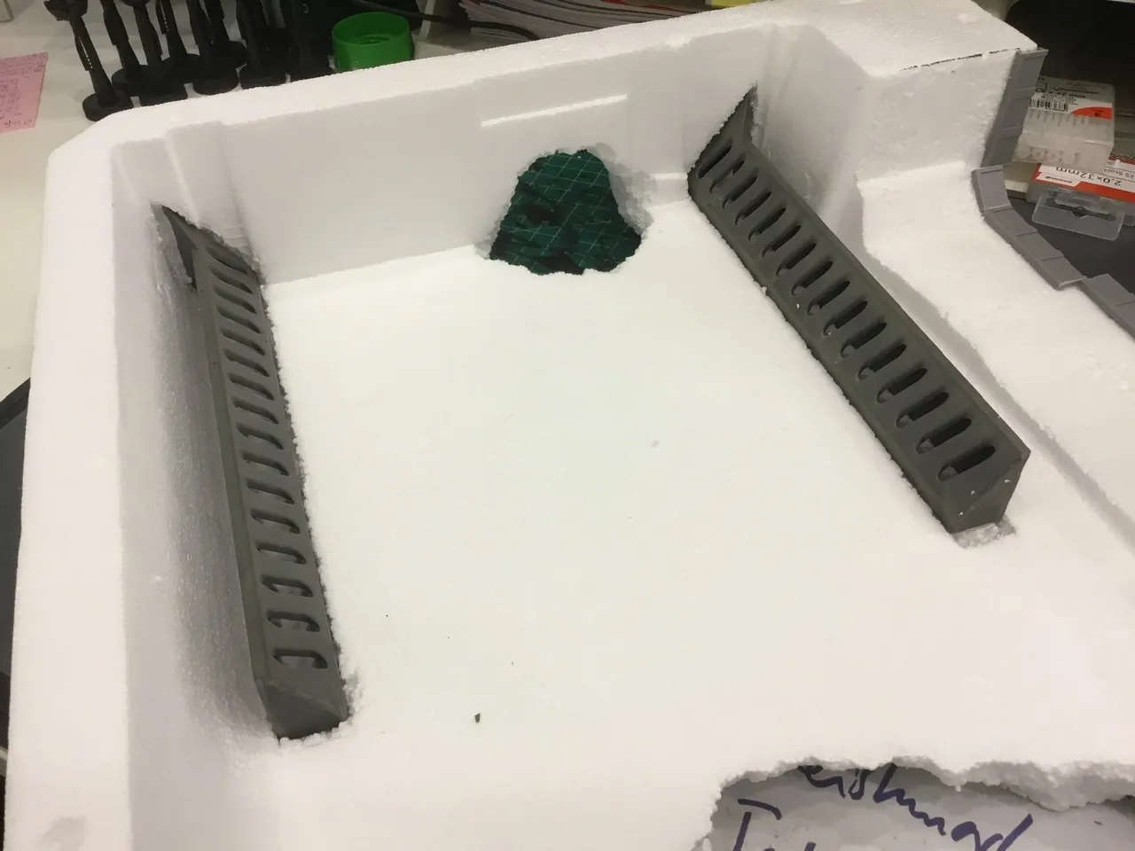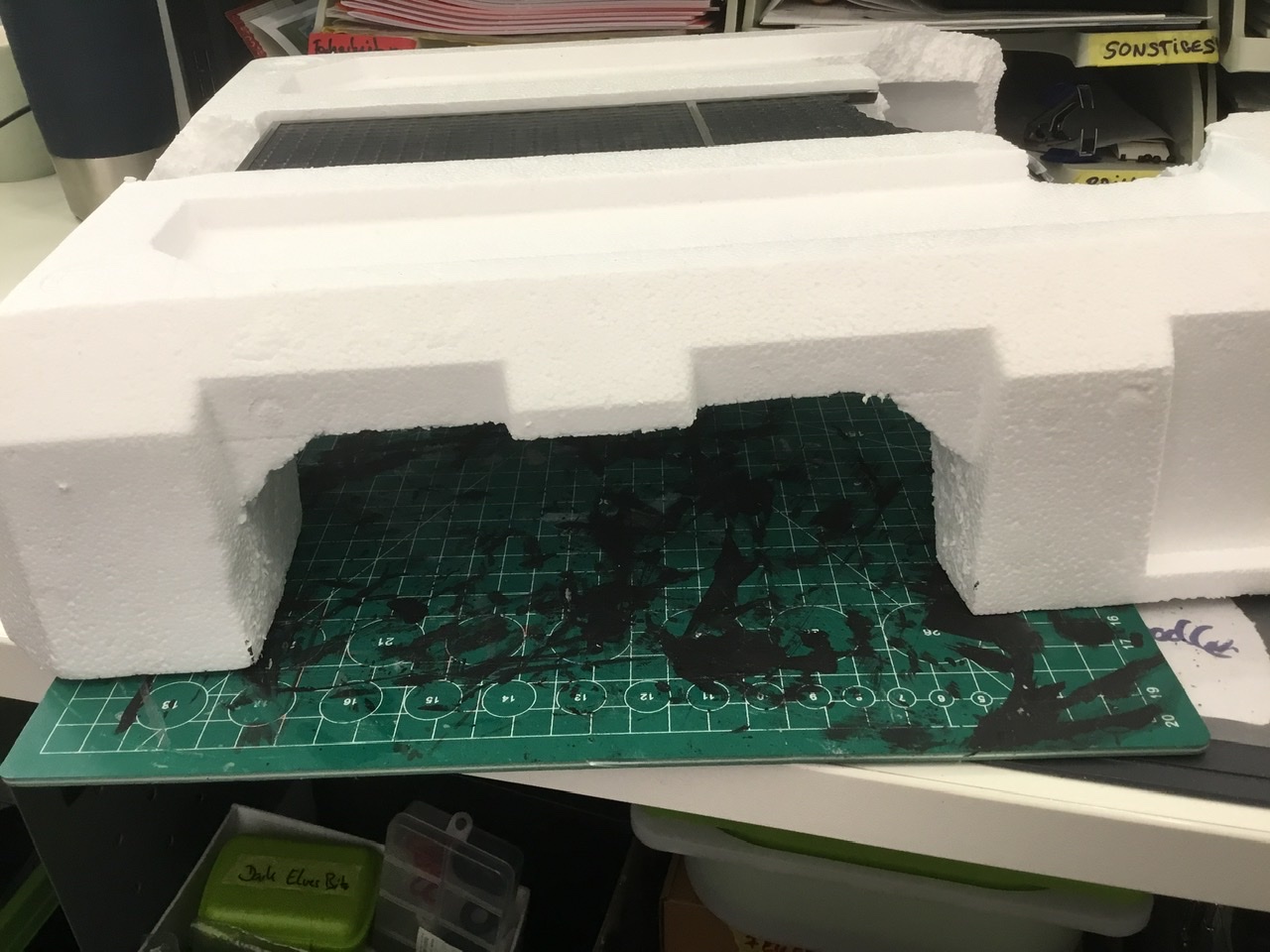 Ursprünglich wollte ich nur ein Styroporteil nutzen, aber ich musste feststellen, dass dann die meisten Fahrzeuge und Läufer nicht reinpassen würden... Aber seht selbst.