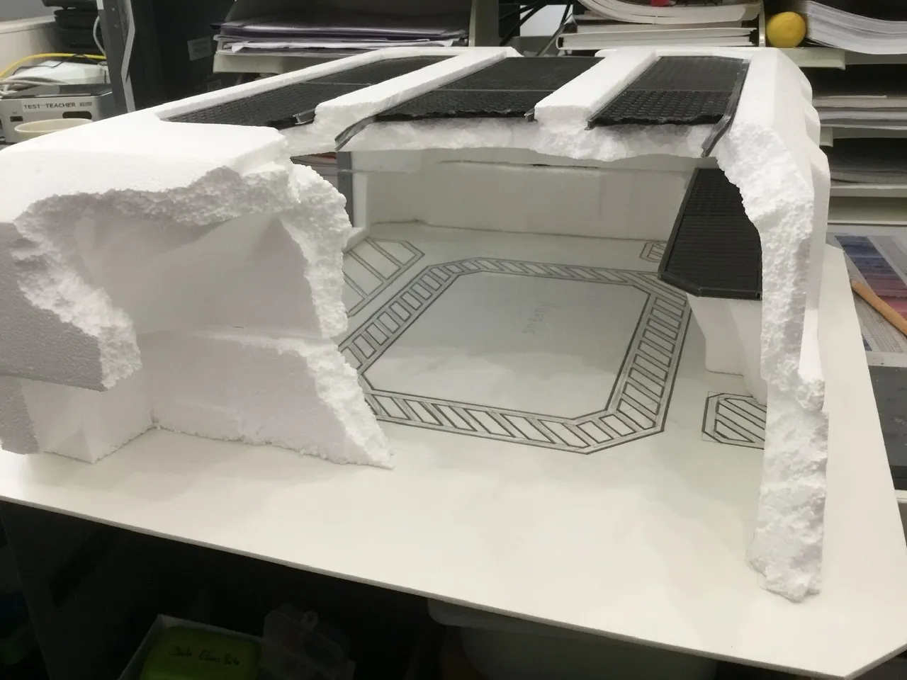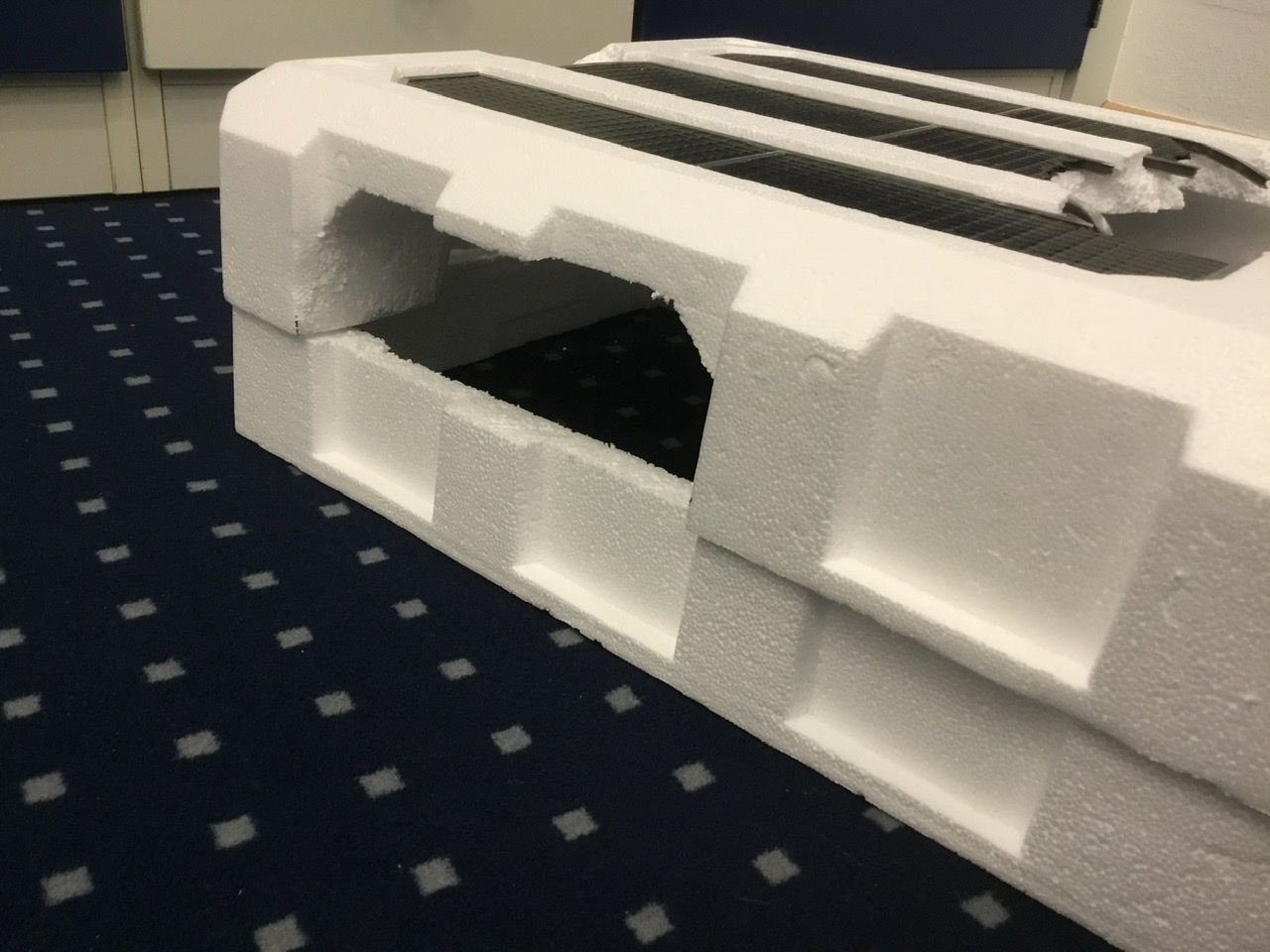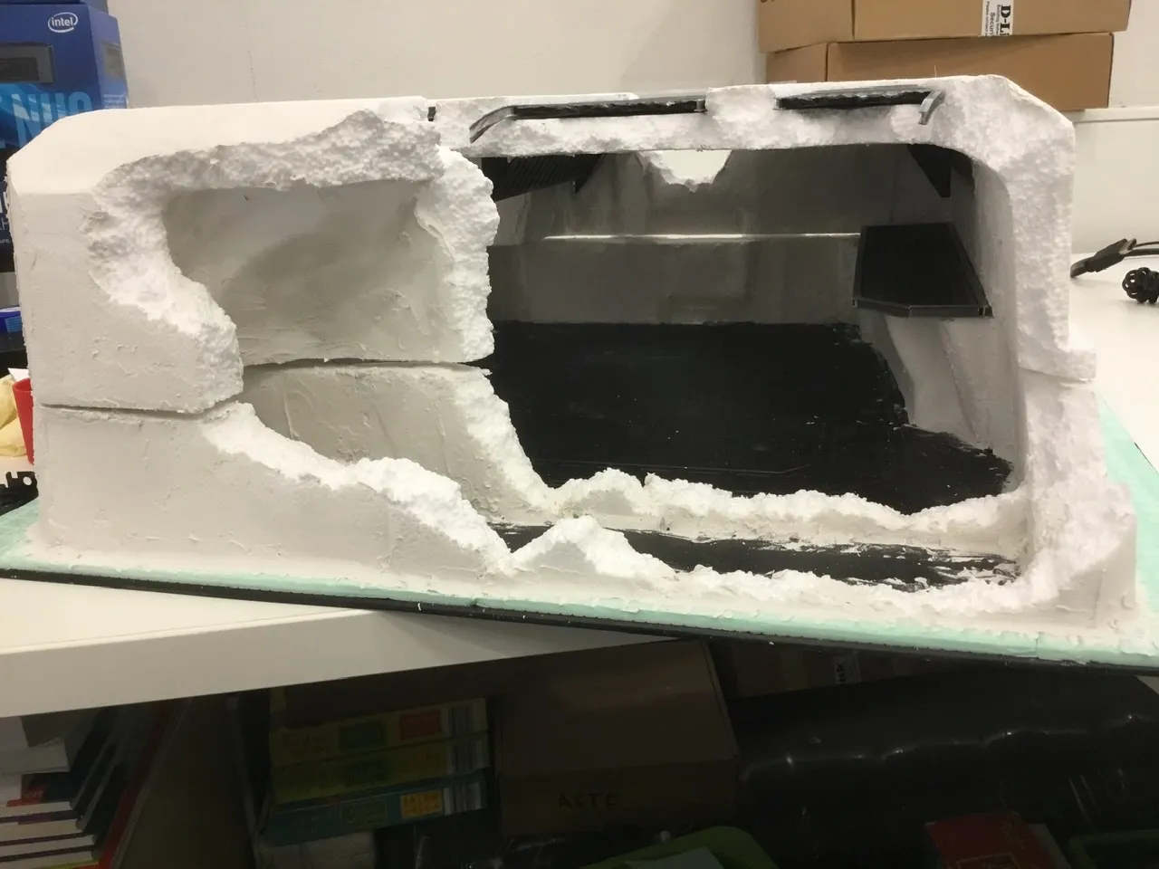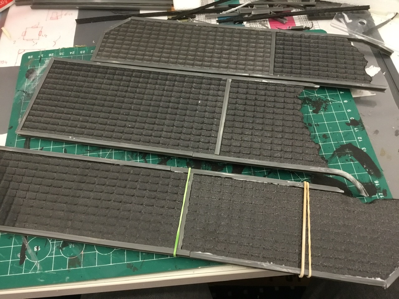 Ursprünglich wollte ich nur ein Styroporteil nutzen, aber ich musste feststellen, dass dann die meisten Fahrzeuge und Läufer nicht reinpassen würden... Aber seht selbst.