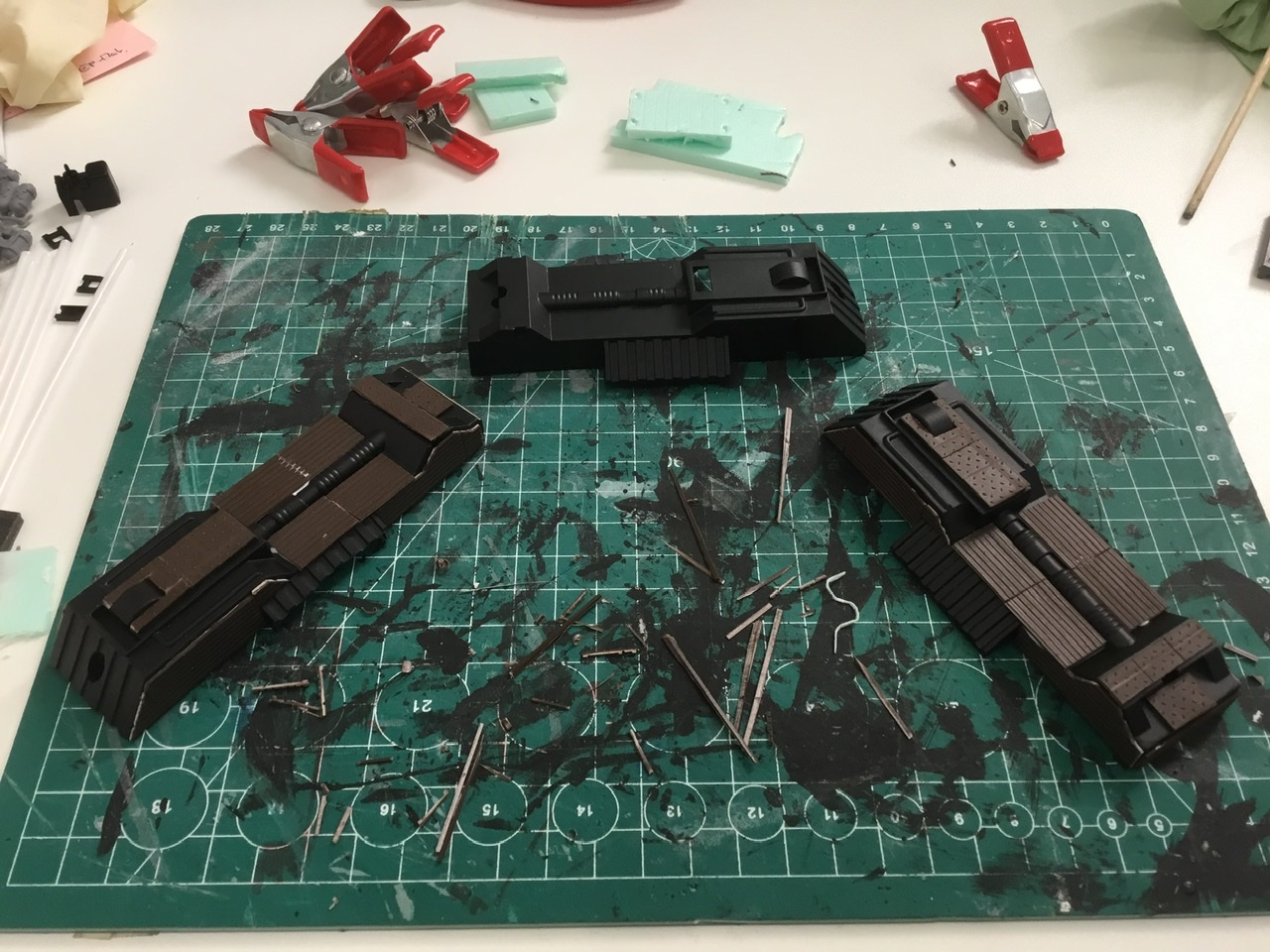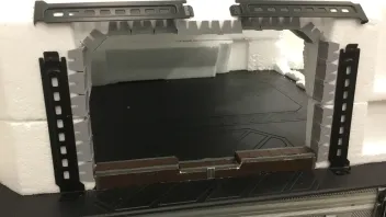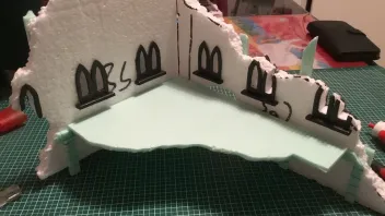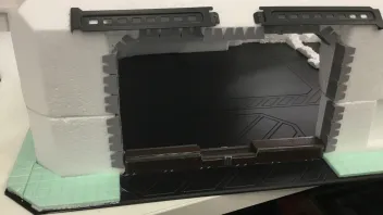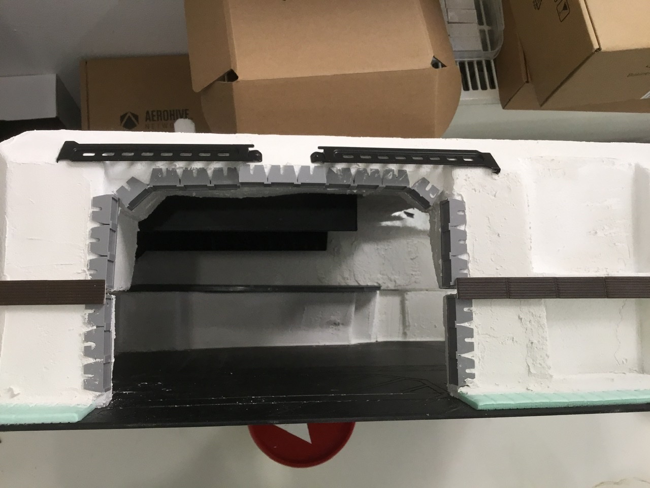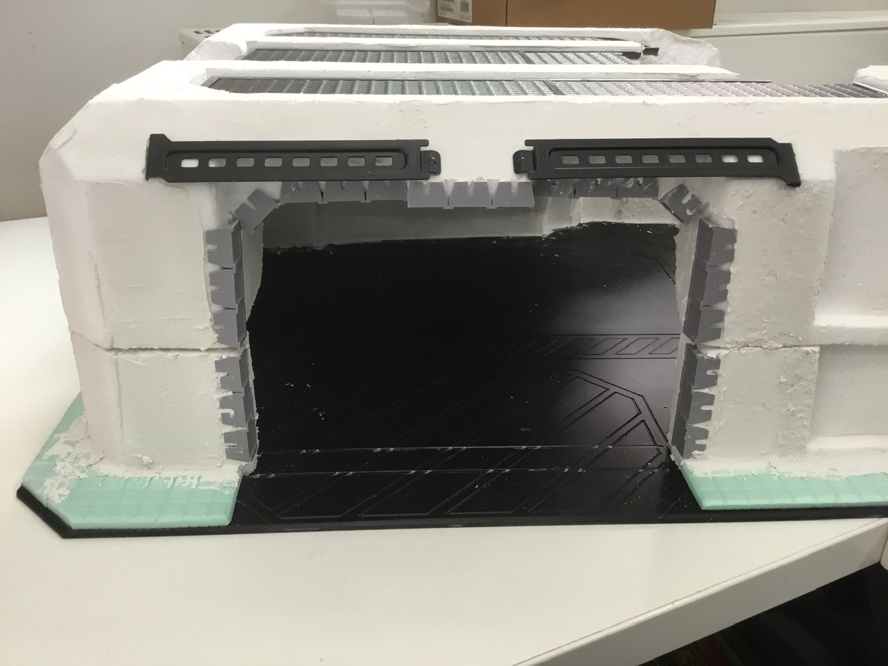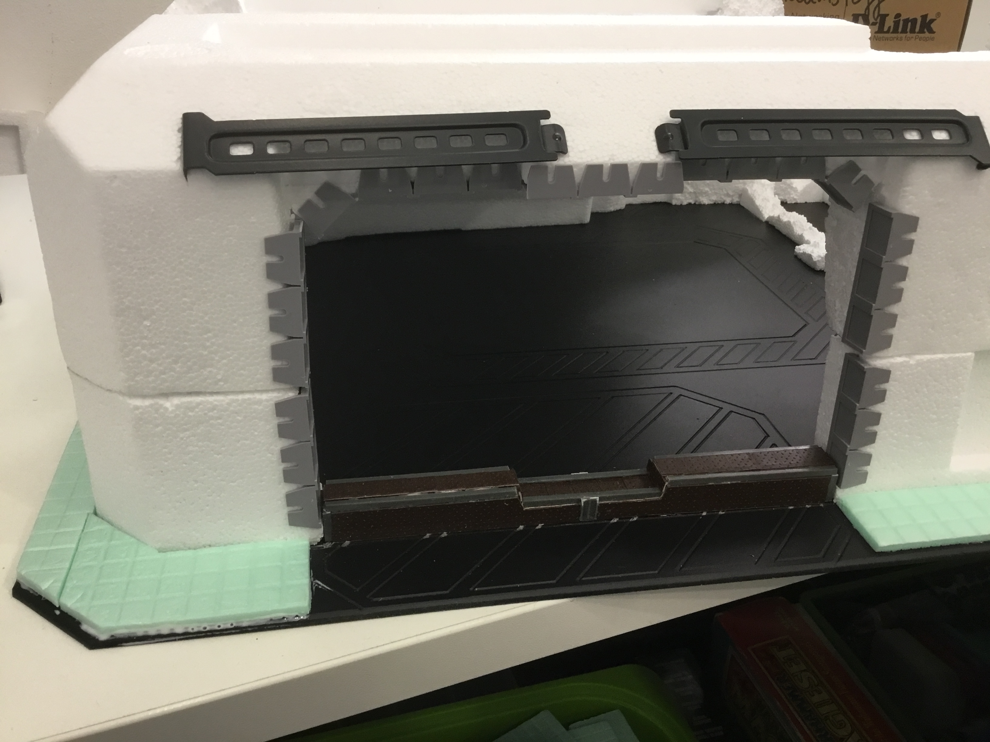 Dann habe ich noch ein wenig am Tor weitergebaut, ein paar Verkleidungsteile hinzugefügt und das Tor selber ein bisschen bearbeitet, damit es von der Kontur mit der Toroberseite zusammenpasst.