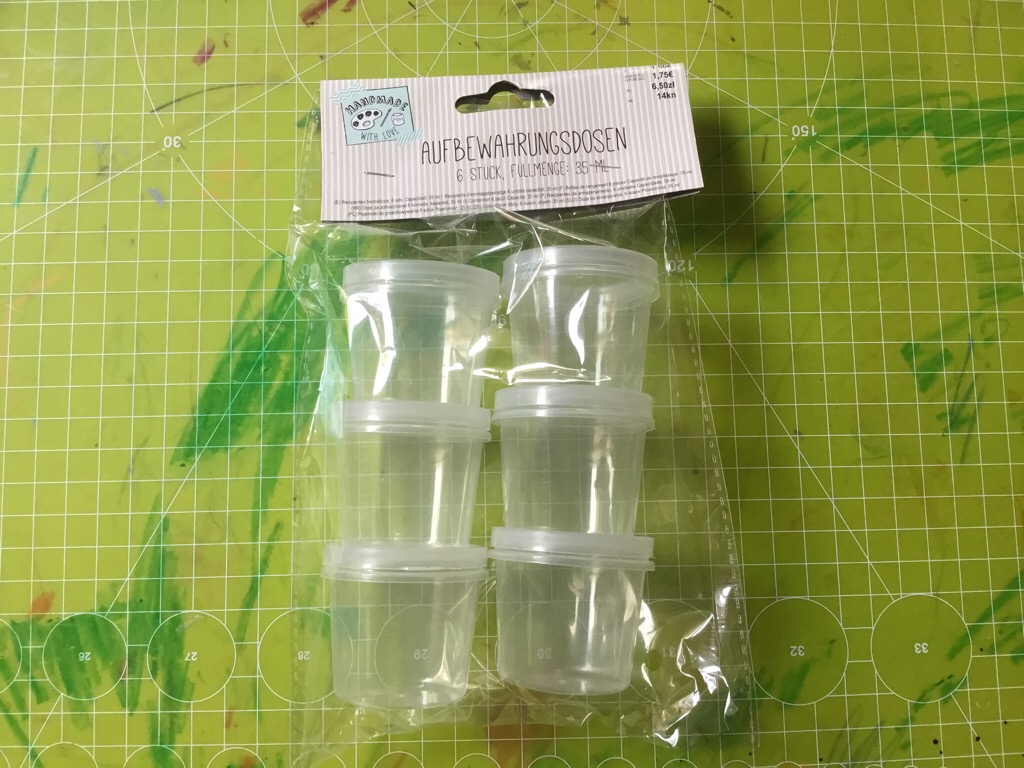 Das Ausgangsprodukt - Achterpack Aufbewahrungsdosen für 1€ die Packung. Drei davon habe ich mitgenommen.