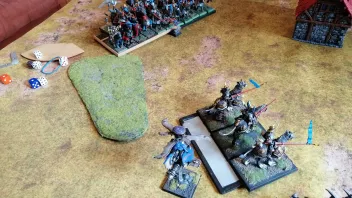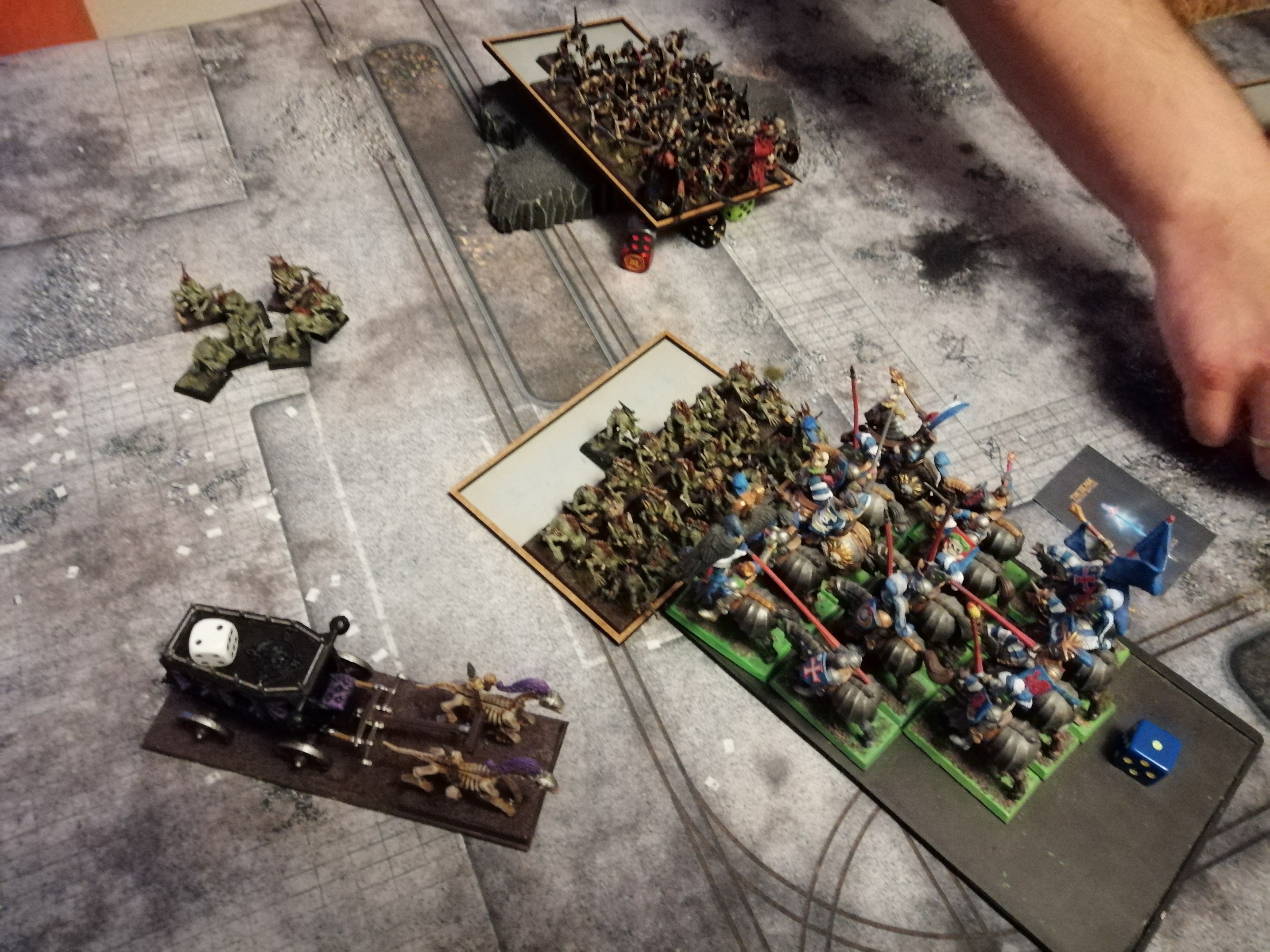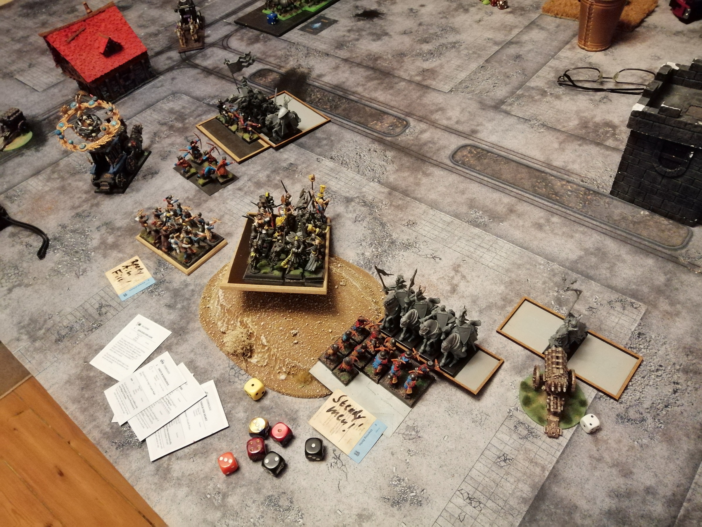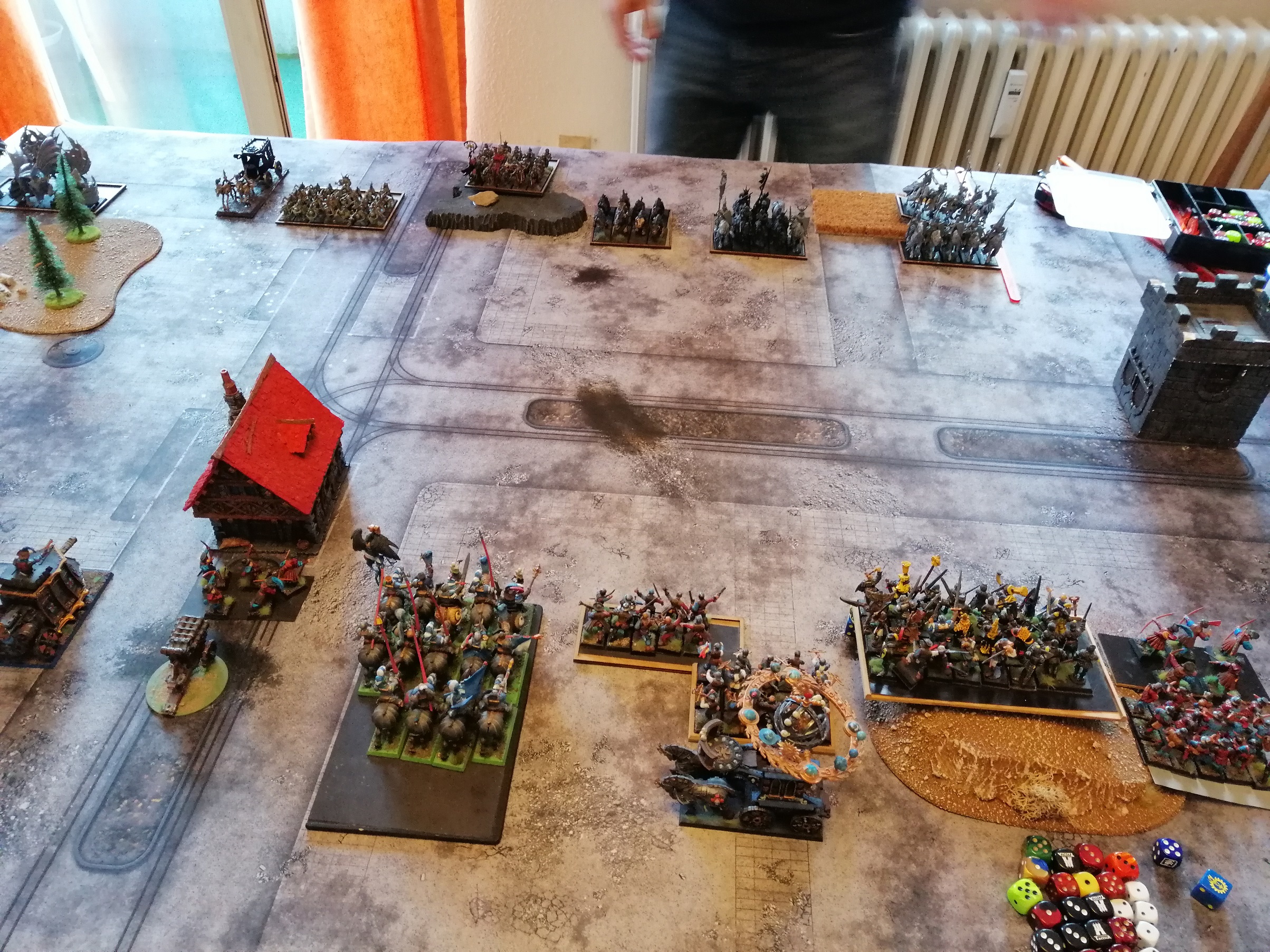 Meine Ritter erschlagen ihn daraufhin, aber er hat seiner Armee Zeit erkauft und für mich gibts keine rerolls mehr.