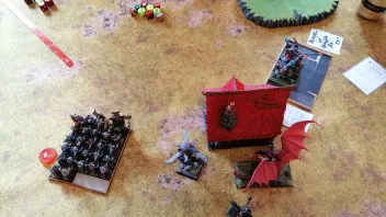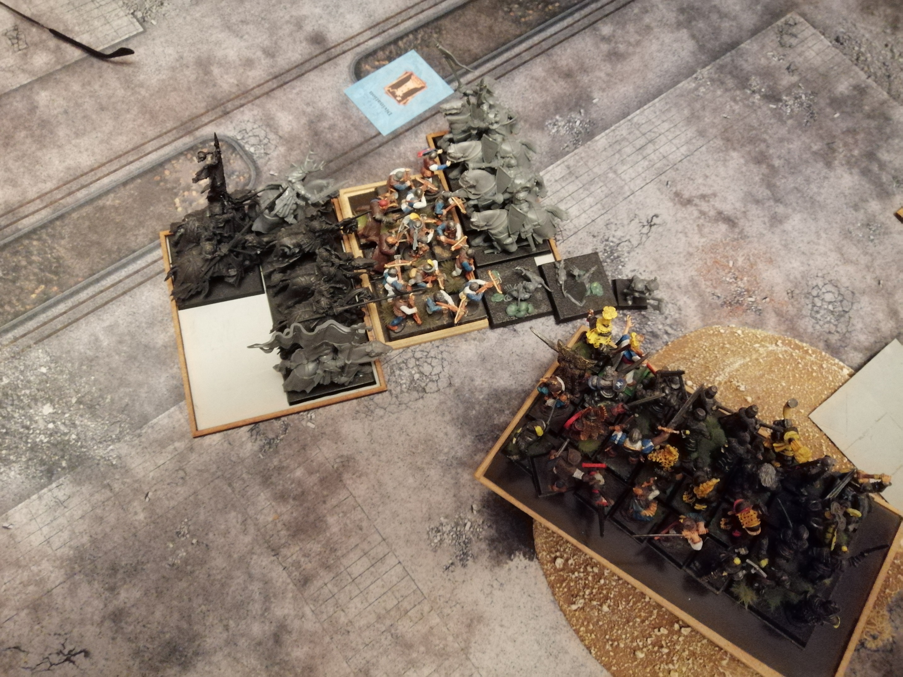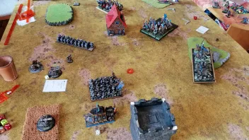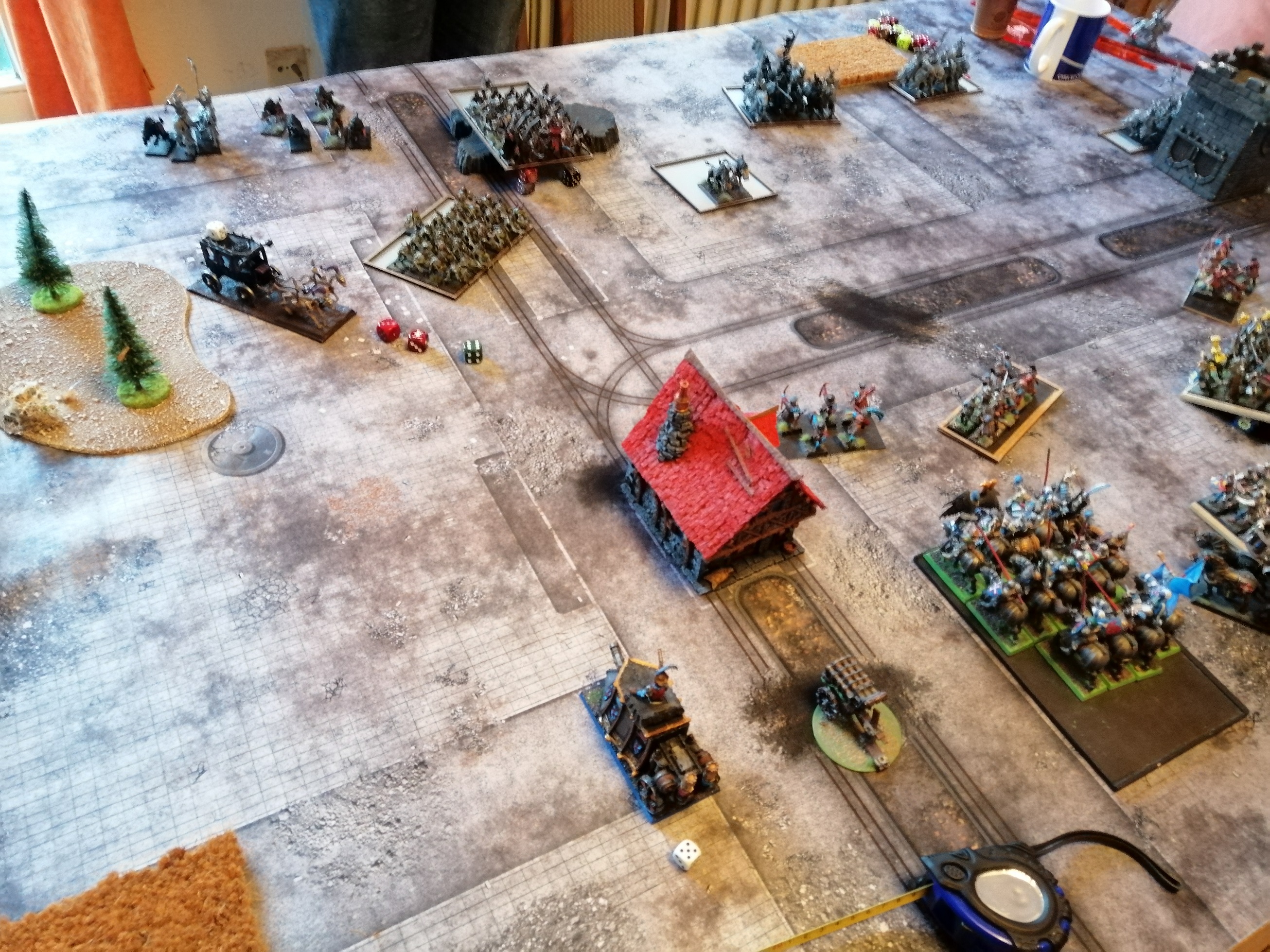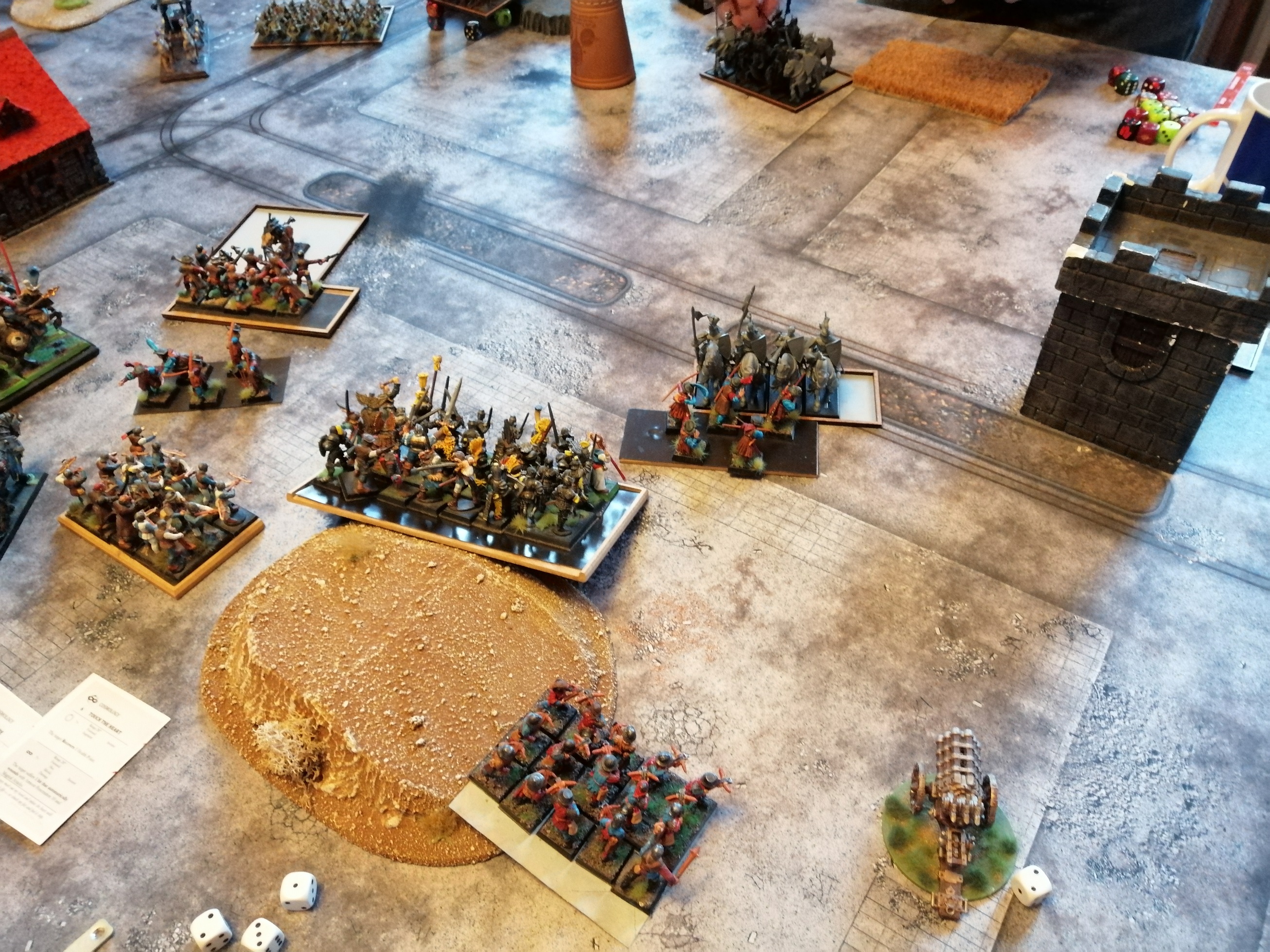 Meine Ritter erschlagen ihn daraufhin, aber er hat seiner Armee Zeit erkauft und für mich gibts keine rerolls mehr.