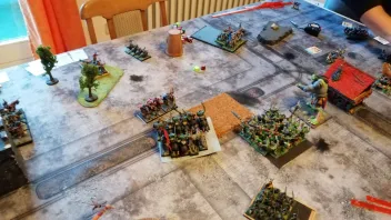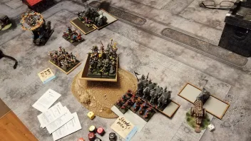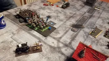 wirst Du da auch oft kein Gelände in der Schlachtfeldmitte vorfinden. Doof für meine Oger gegen Hochelfenbeschuss und Zwergenkanonen, aber ist dann so.