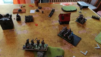 Mittig seht Ihr im Bild, wie mein jetzt AST-loser Kavalleriebus die Flanke der Schützen sieht.