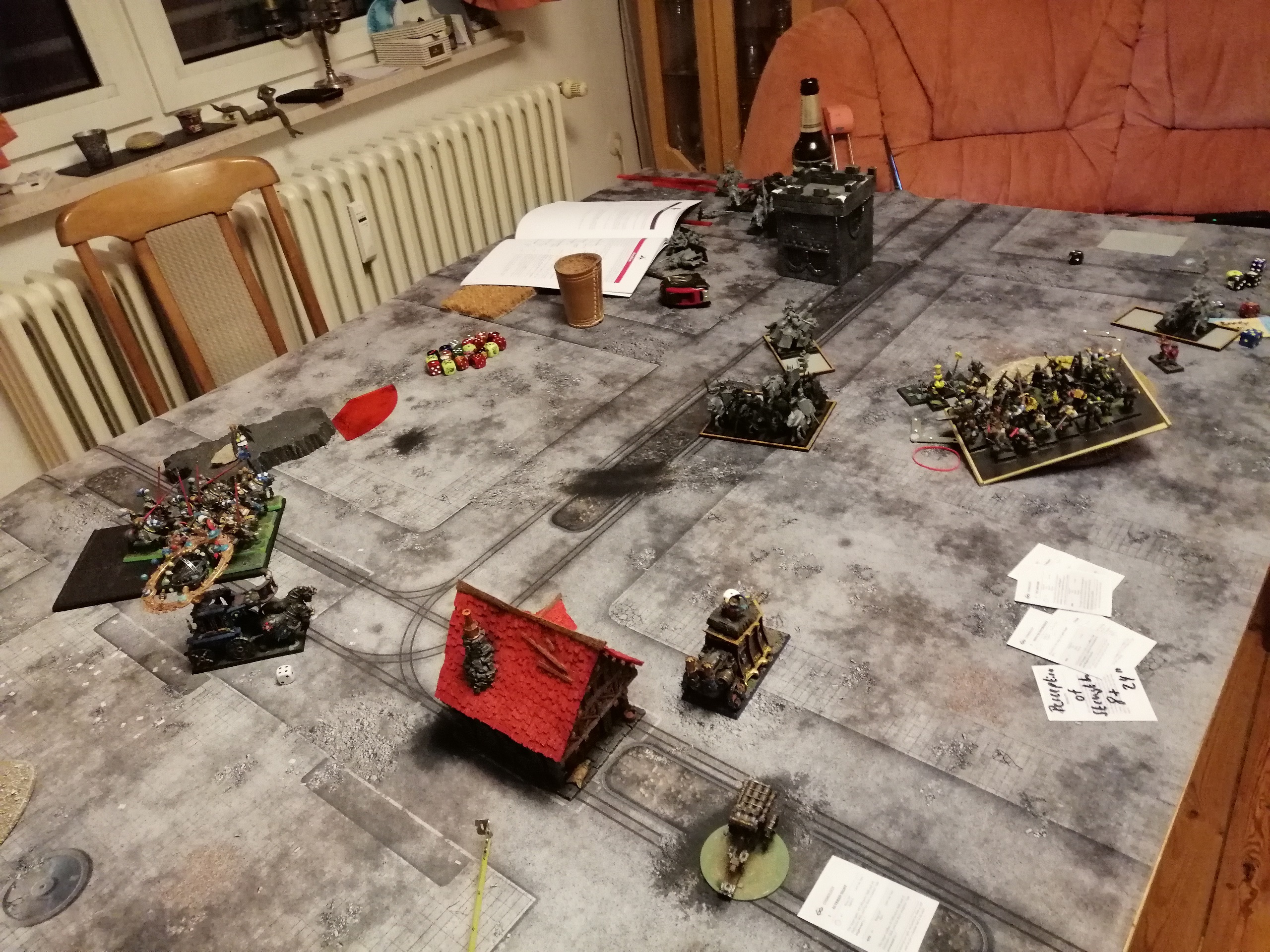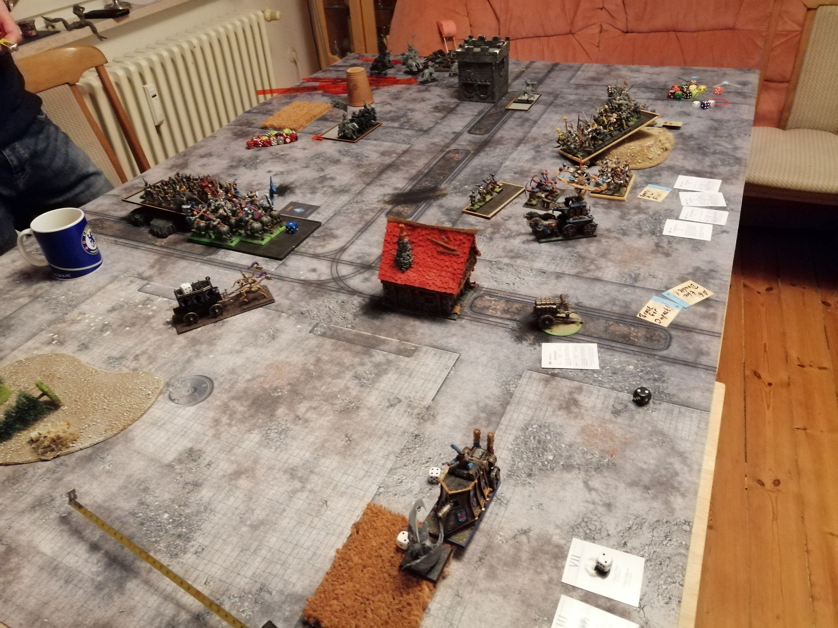 Gratulation zum sieg und ein Schöner bericht die Mitte der Platte erscheint mir ein bischen Lehr ( gute schussfelder für s Imperium ) habt ihr eine Offiziele Map
