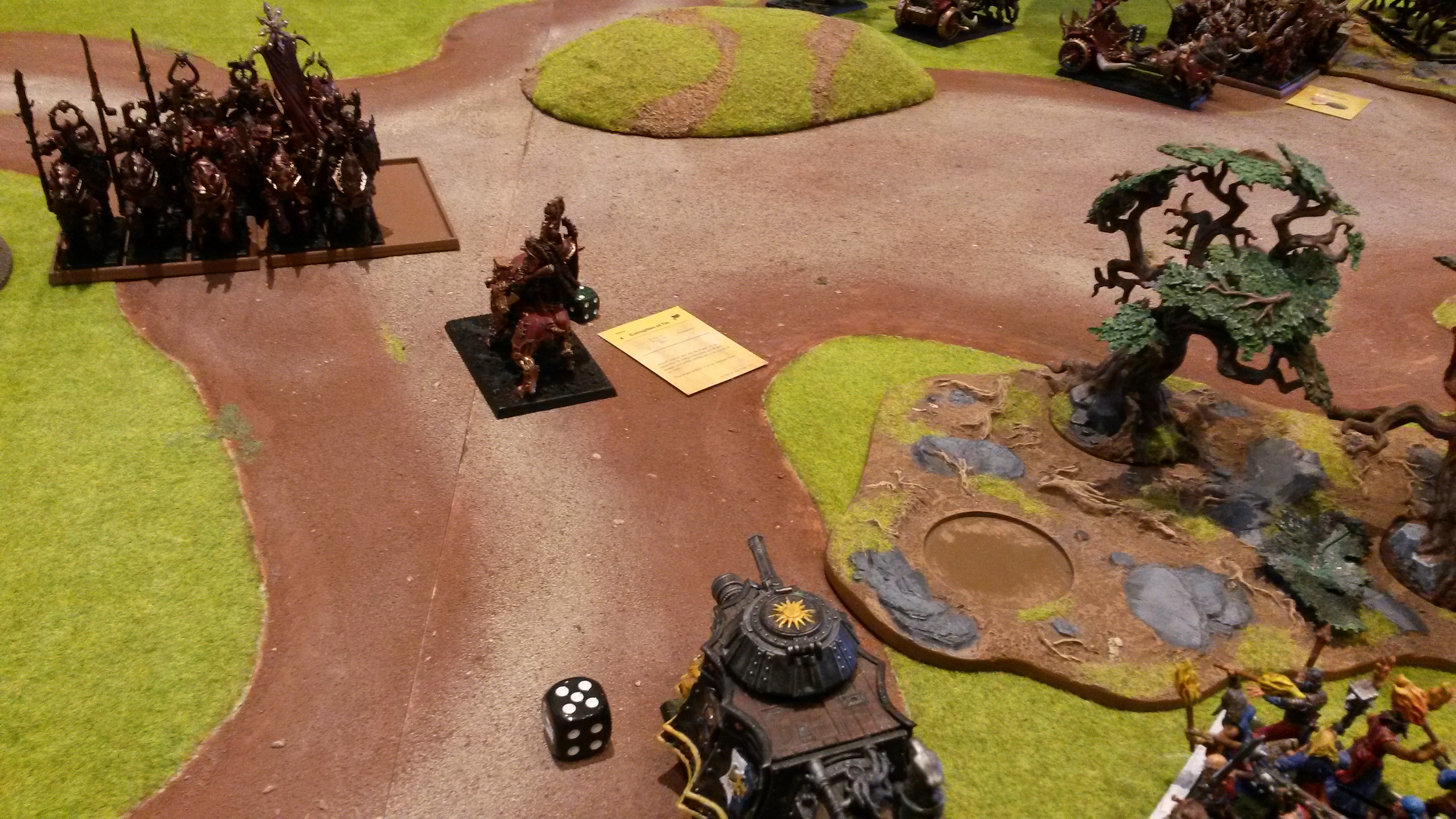 und die Rechtsaußen liefern sich ein Katz- und Maus-Spiel mit seinem Priester auf Streitwagen.Seine Runde...Charge!