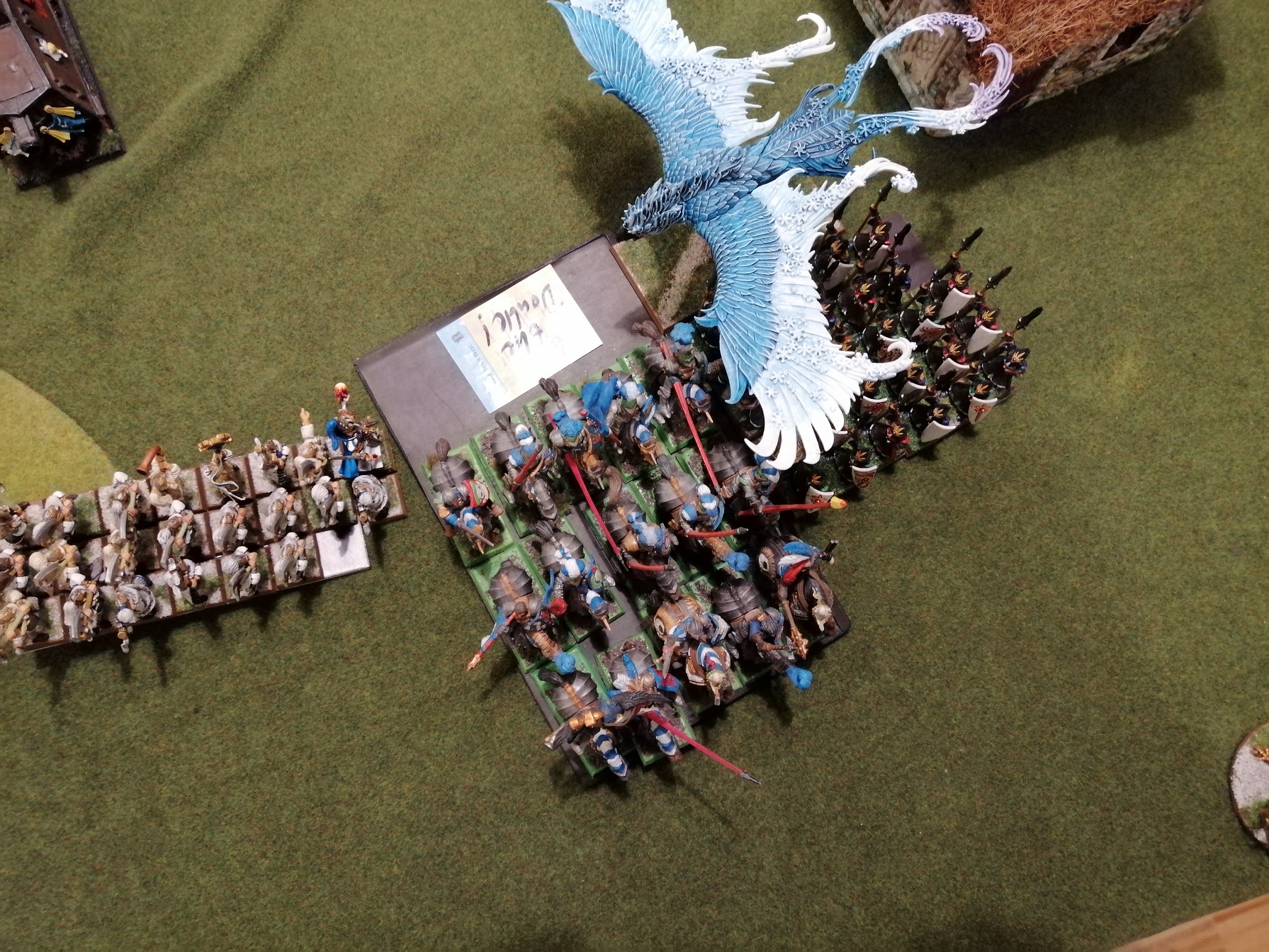 einem Frostphönix, zwei Adlern und 10 Highborn-Lancern.