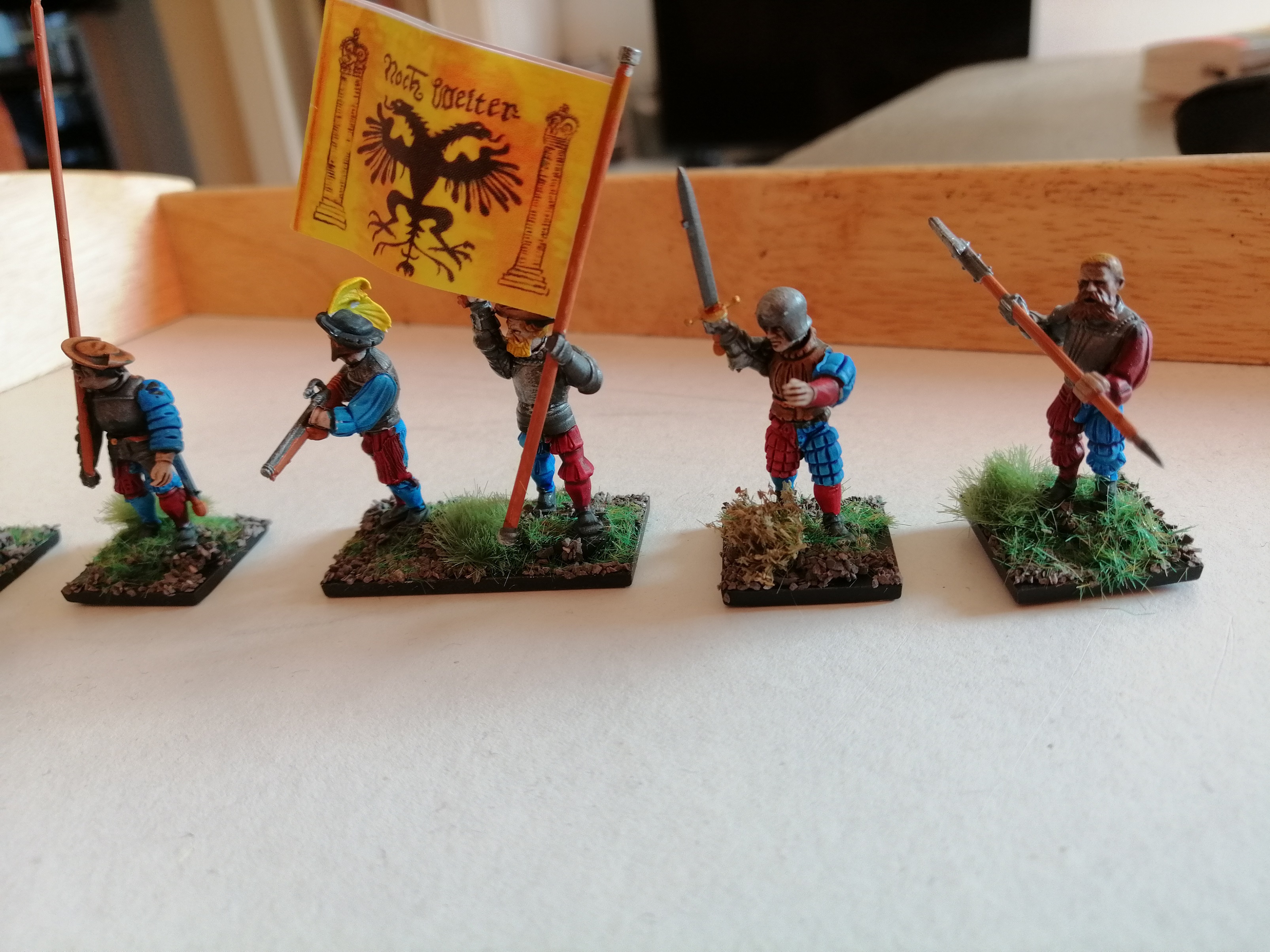 Das Banner war im Bausatz drin. Ich bin mir noch nicht sicher, ob ich lieber weiter mäßig bemalte Eigenkreationen