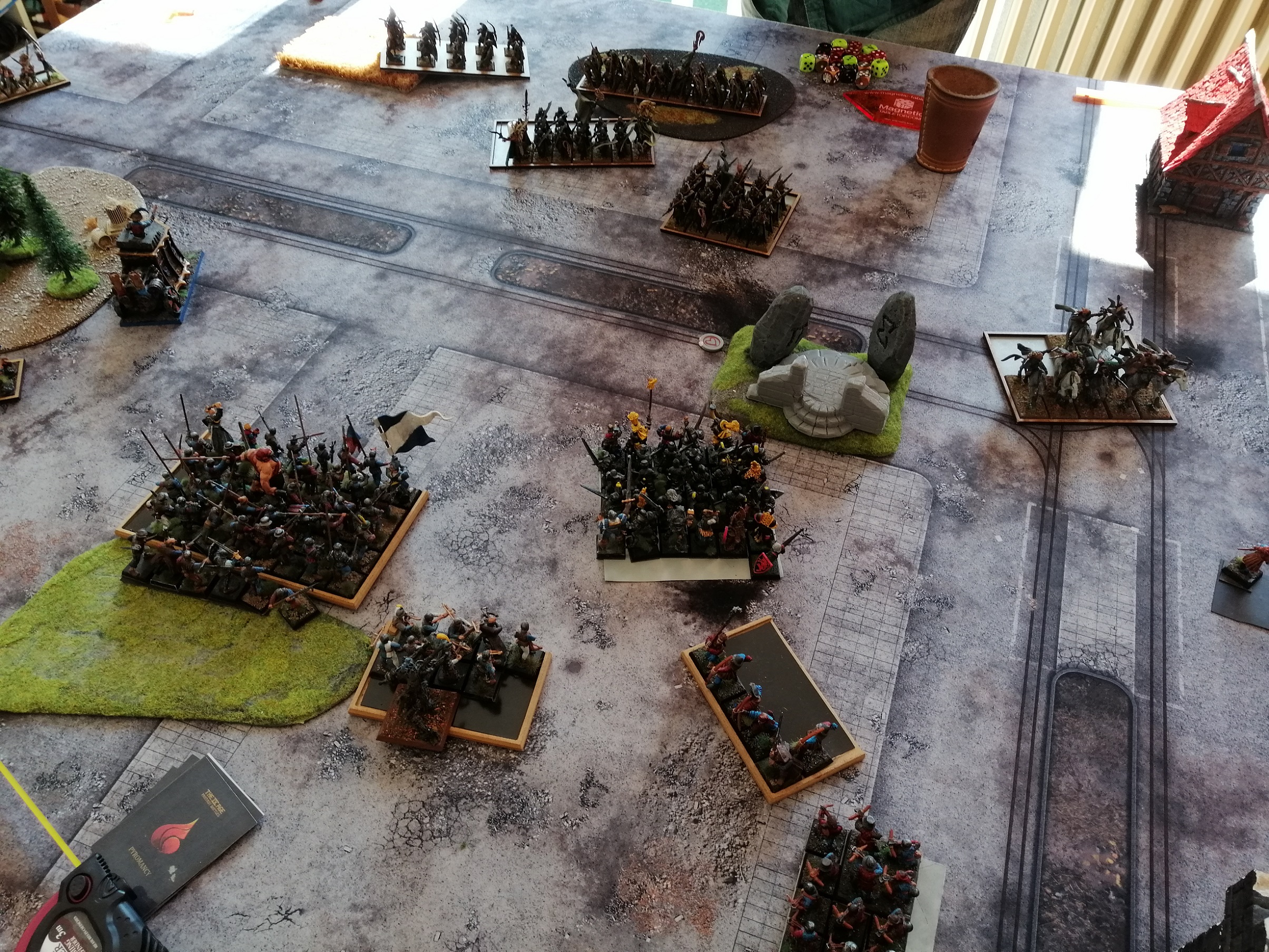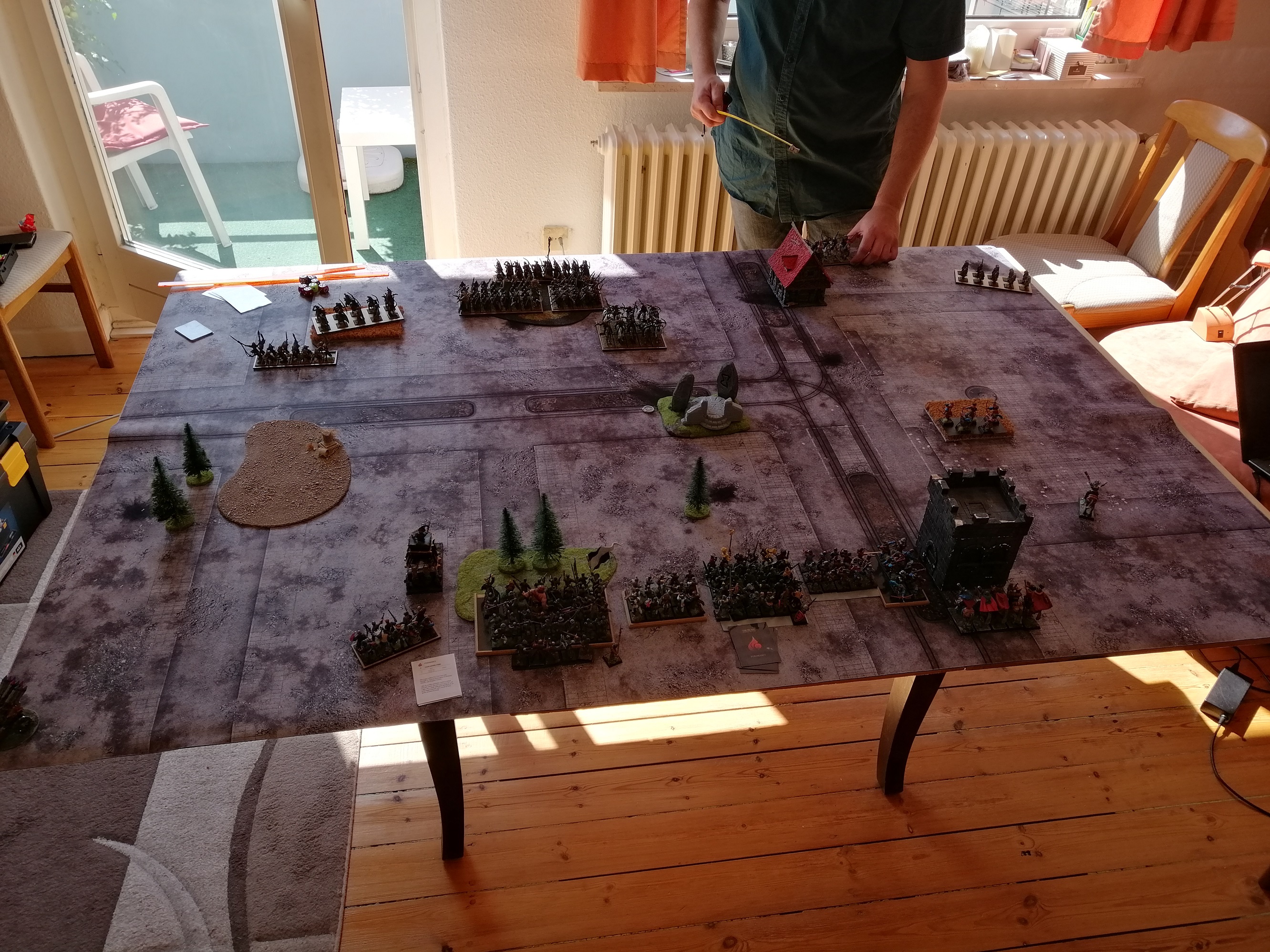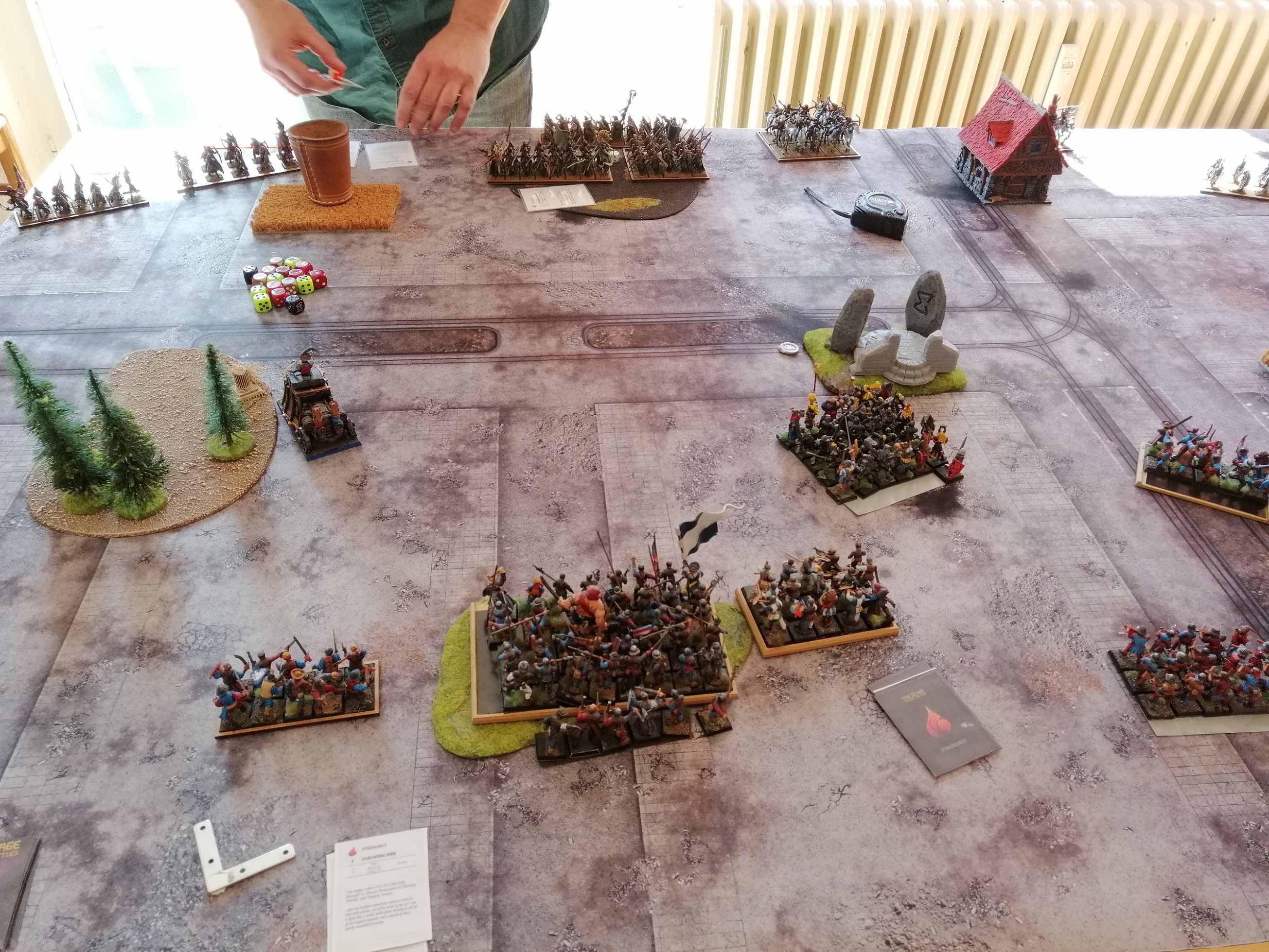 unterbrochen von Freitag Nachmittag bis Sonntagnachmittag munter Würfel und Miniaturen über den Tisch geschoben.