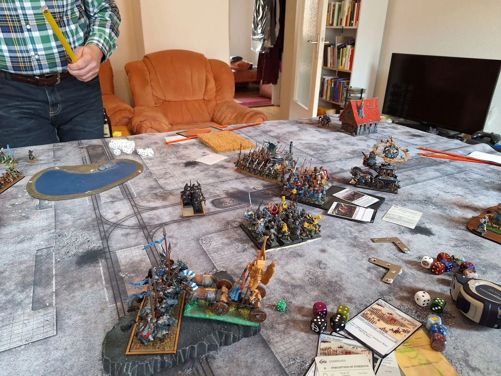 habe ich bisher nur wilde Resultate aufzuweisen (20:0 mit Bretonen gegen Dunkelelfen 2013 und 0:20 mit Ogern gegen seine Chaoszwerge 2023).