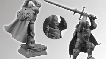 Statt dem Schwert soll das Modell einen Speer oder eine Lanze erhalten, mit dem es vom Wagen nach unten zusticht. Mit dem Glatzkopf (ggf. auch ohne Umhang) müsste ich daraus eigentlich nen Kriegspriester hinbekommen. Auf diese Weise soll ein mit Priestern besetzter Streitwagen entstehen.