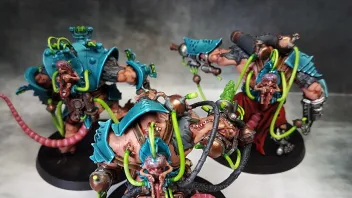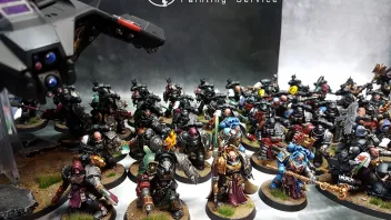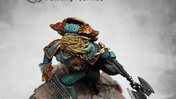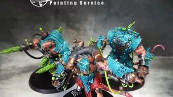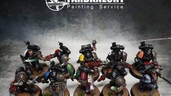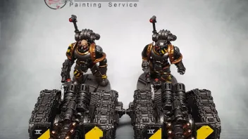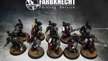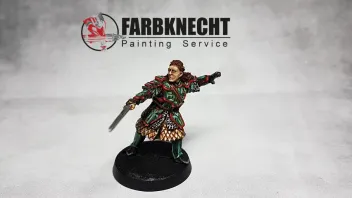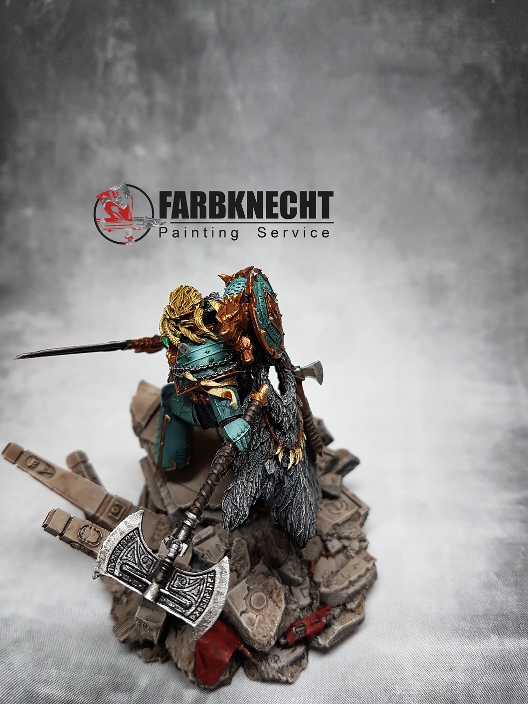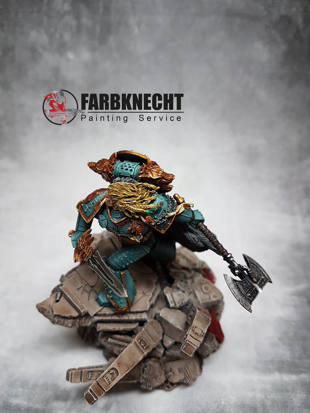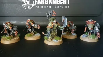 Paket 1, 2 feine Akzente, einfaches Freehand, sehr detailliertes Gesicht, aufwendiges Emblem, Aufwändige Effekte: Weathering, Kampfspuren, Rost, Leuchteffekt, Schlamm verkrustete Ketten