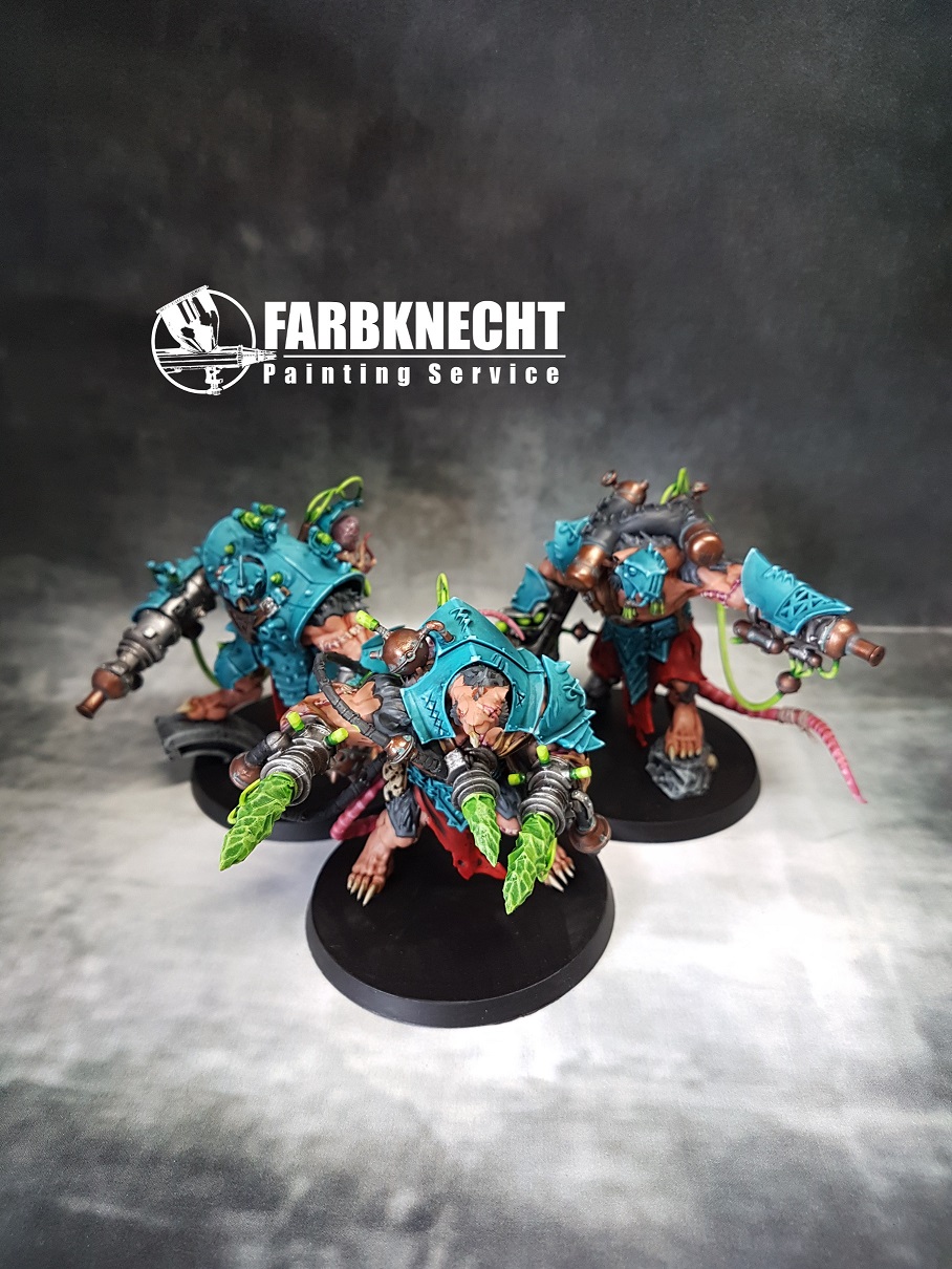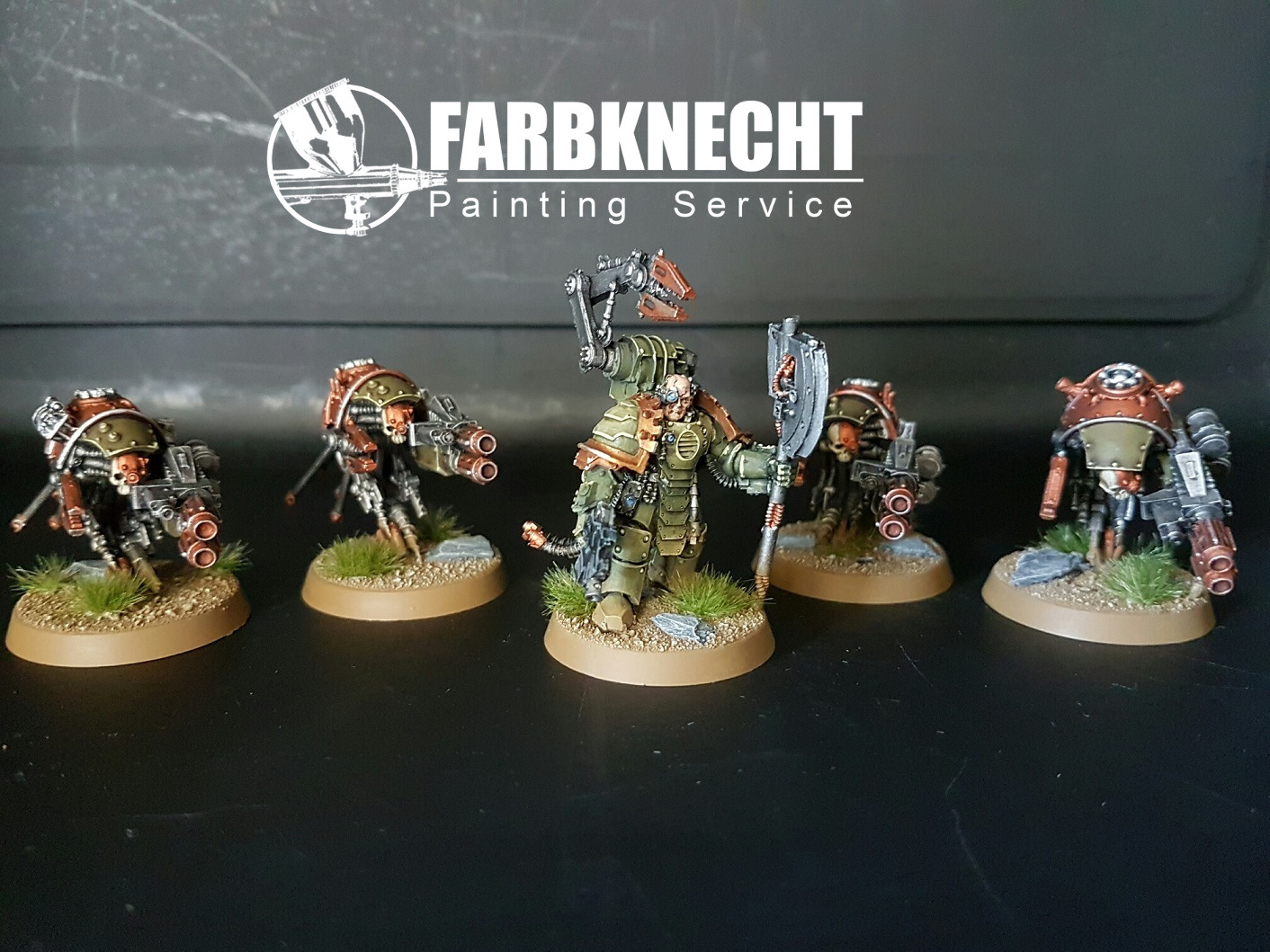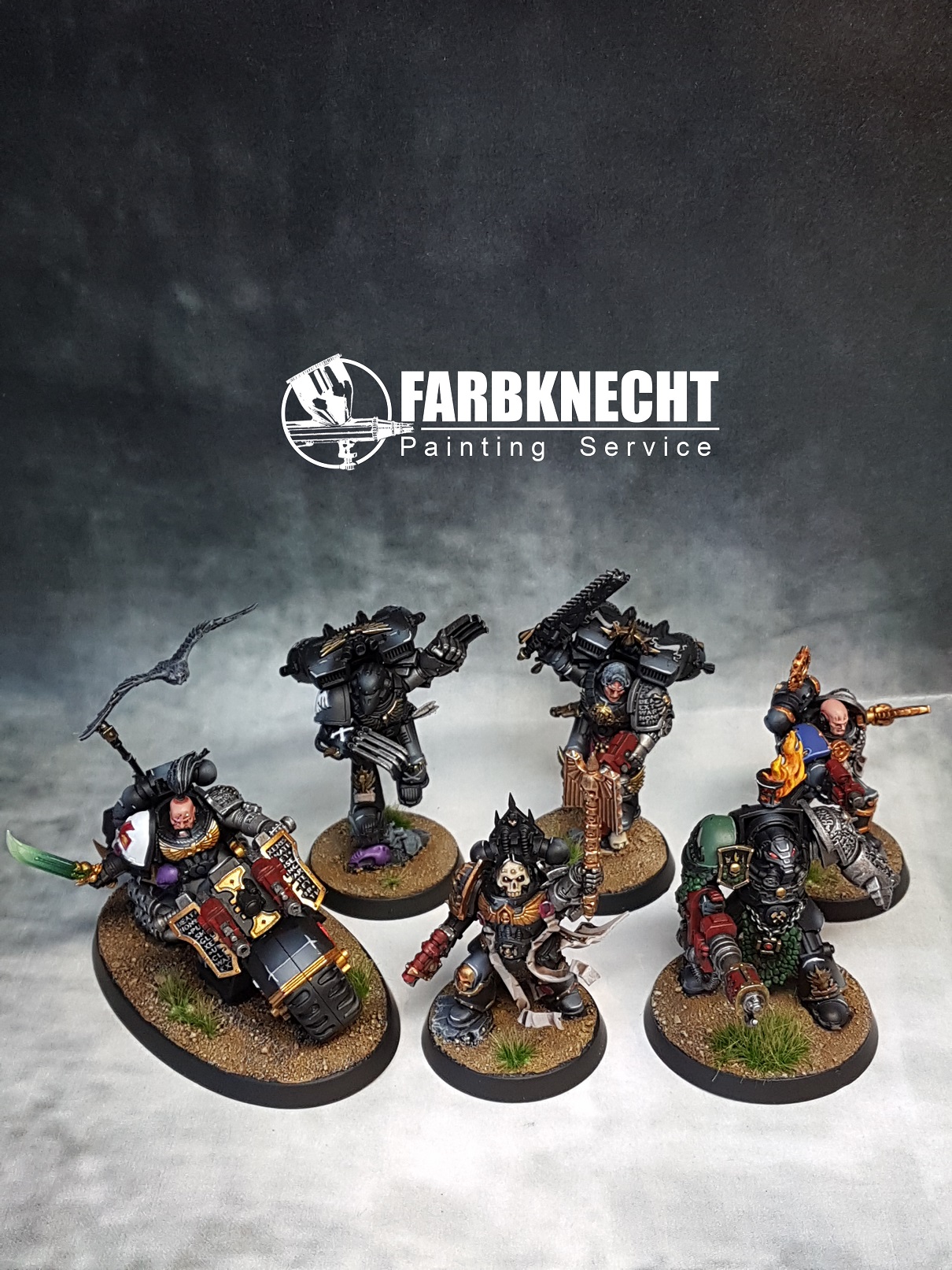 Paket 1, 2 feine Akzente, einfaches Freehand, sehr detailliertes Gesicht, aufwendiges Emblem, Aufwändige Effekte: Weathering, Kampfspuren, Rost, Leuchteffekt, Schlamm verkrustete Ketten