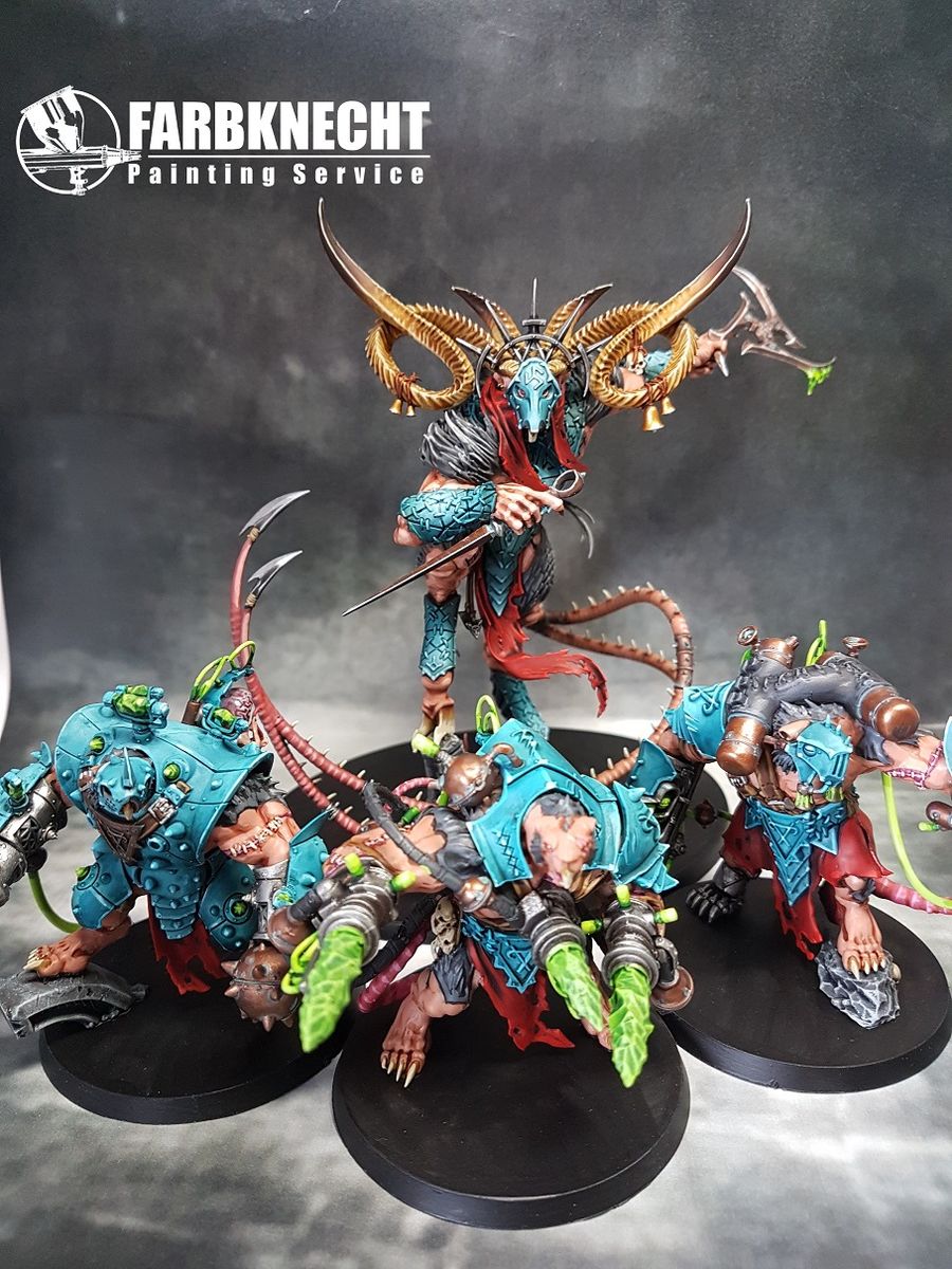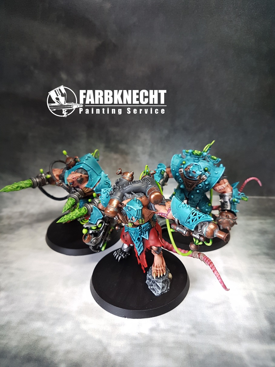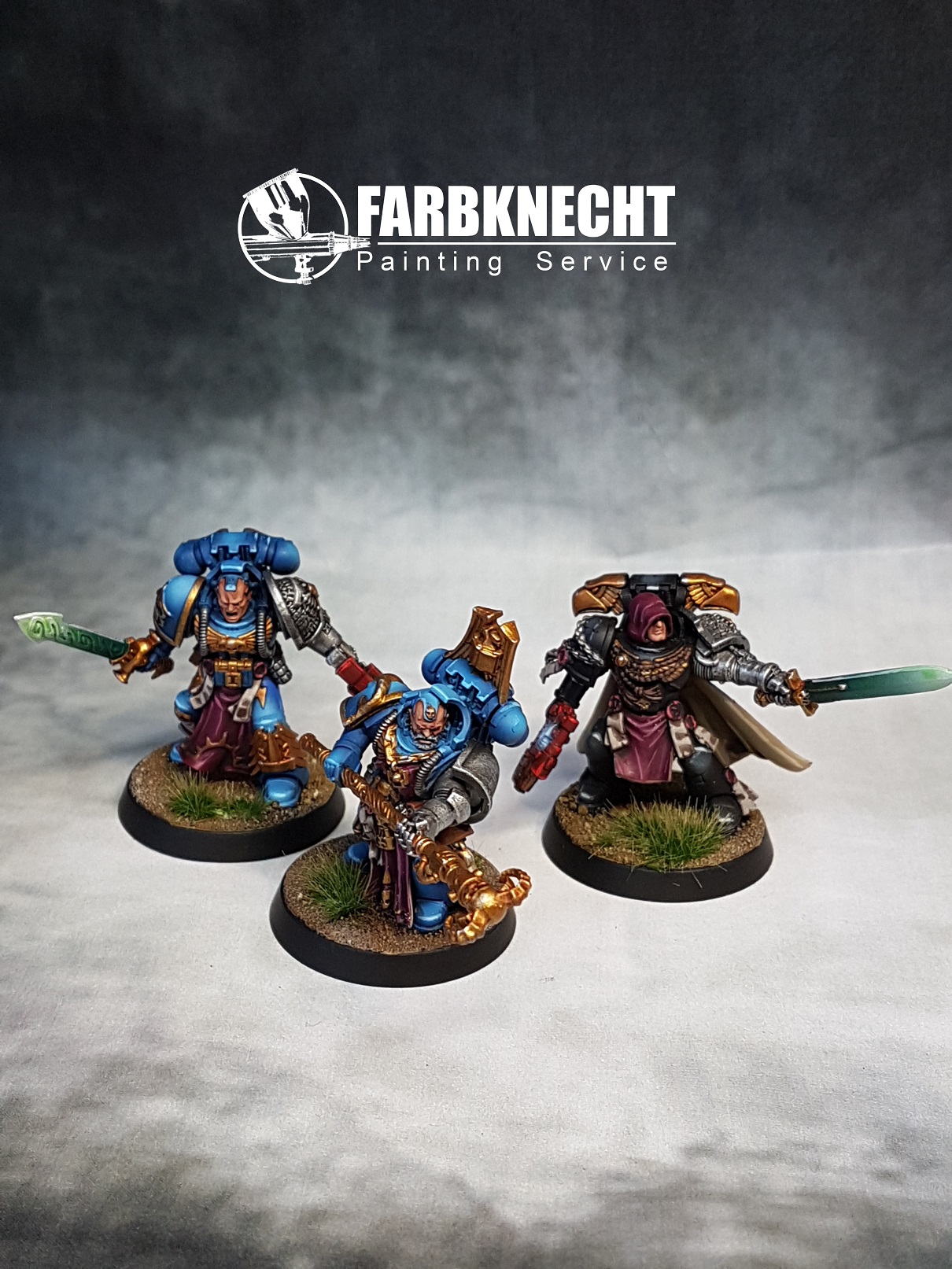 Paket 1, 2 feine Akzente, einfaches Freehand, sehr detailliertes Gesicht, aufwendiges Emblem, Aufwändige Effekte: Weathering, Kampfspuren, Rost, Leuchteffekt, Schlamm verkrustete Ketten