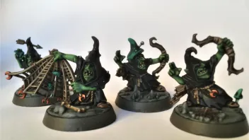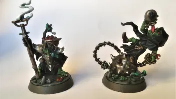 Als Zwergen und Skaven-"Besitzer" habe ich immer mit den Orks & Goblins geliebäugelt. Mochte den Gedanken, dass drei Fraktionen um eine unterirdische Zwergenstadt streiten. Aber da ich schon einen O&G-Spieler kenne, kam das nie in Frage. Die "neuen" Modelle der "Gloomspite Gitze" sind einfach zu schön, um sie grau zu lassen (bzw. gelb - Zarbags Gitze für Warhammer Underworlds)