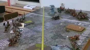 Im Nahkampf verhauen die Yetis das Biest und die Bullendie Hunde beide Einheiten richten sich neu aus.2.Zug DD