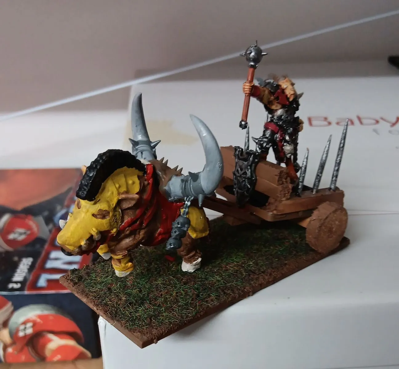 . Dann kommt der Auftritt vom Razortusk Chariot, es überfährt einmal Umlenker, dann hilft es beim brechen der Silvehelme und überrennt ein zweites mal in den Phönix der vom zweiten Razortusk Chariot angegriffen wurde die Aufpralltreffer Tötten den Vogel, dann war aber die Luft raus und beim weiter überrrenen blockiren sich die Streitwagen selbst und weren vom Greif abgeräumt
