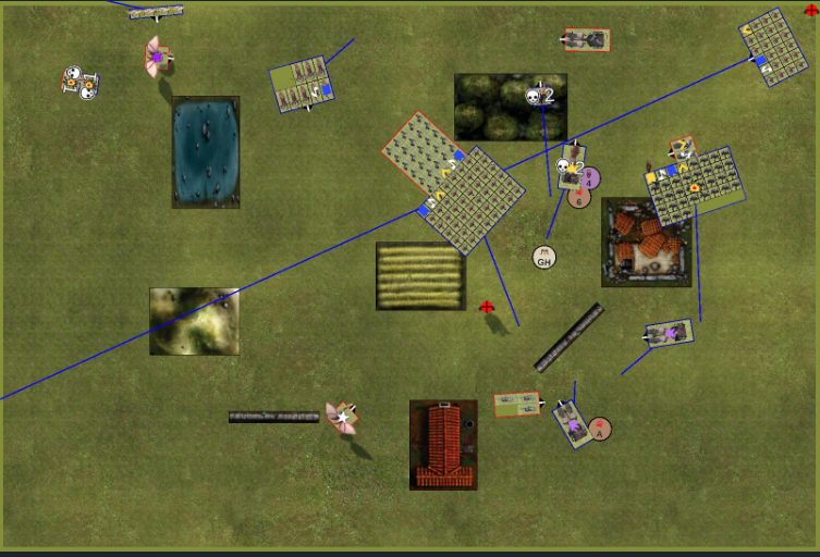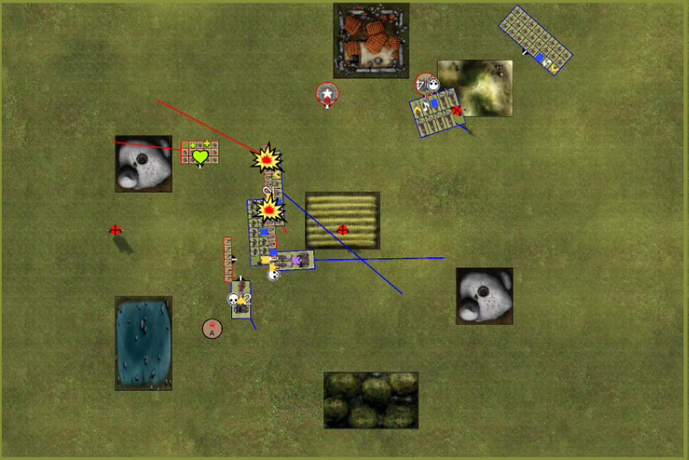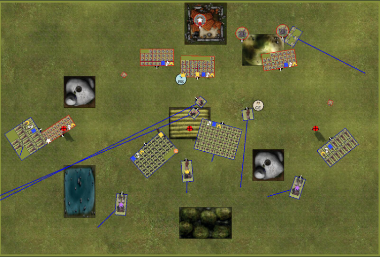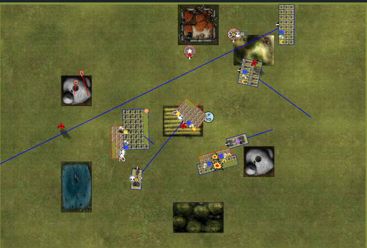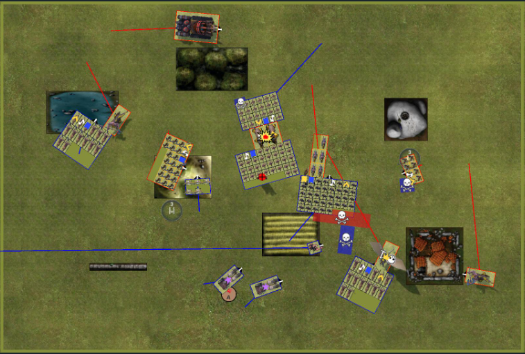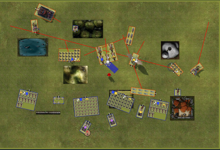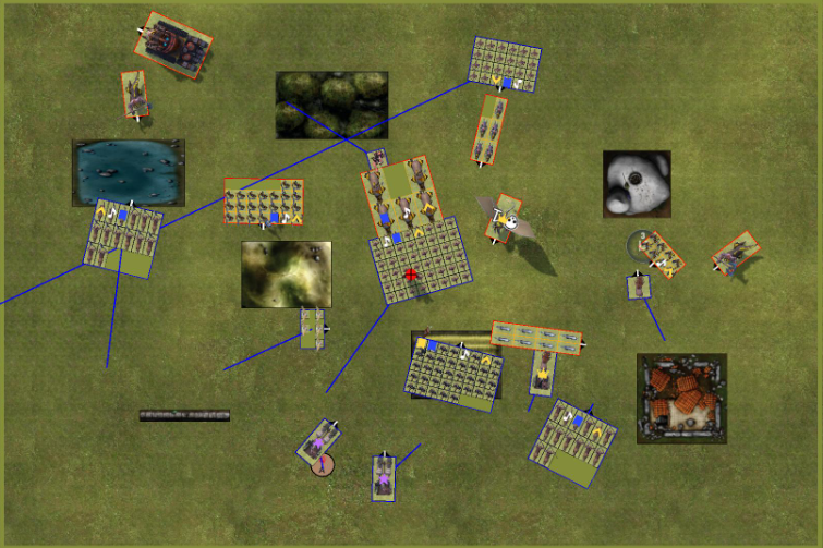 Jetzt kommt das Stellungsspiel wie was kann man schlecht für den Gegner stellen damit der angriff unattraktive wird. das wird dann Spannend als mein Hinterhalt auftaucht.