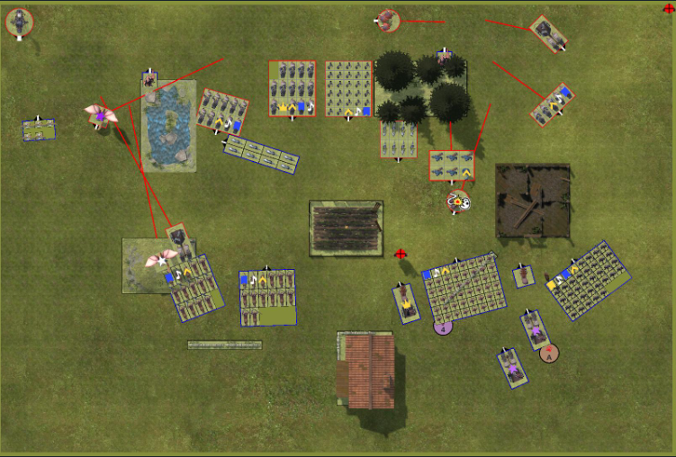 Bei der Aufstellung hätte ich etwas besser breiter stehen sollen, die Centauren mit den Lanzen ganz an der Seite so das der General mehr platz zum bewegen bekommt. Dadurch wäre die Situation mit den Hunden nicht entstanden.