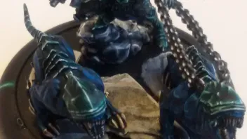 Oh man, ich mag es nicht, Haut zu bemalen. Gerade die erste layer Farbe auf das Reittier vom ersten Nurgle Varanguard gepinselt. Hat ne halbe Stunde gedauert.