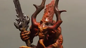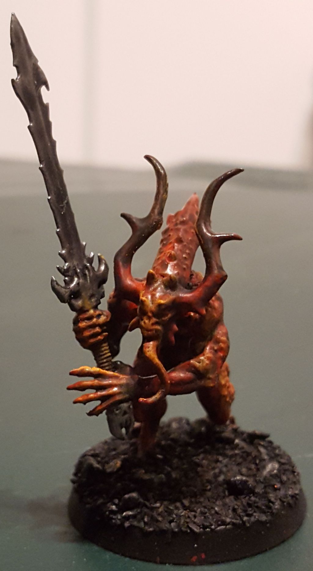 • Wahrscheinlich wird das hier mein Anführer werden. Ich denke, der könnte gut als Chaosprinz ohne Flügel (ist eigentlich ein Battlelore-Modell) - oder wenn das nicht akzeptiert wird - zumindest als Chaosbrut durchgehen ;-)