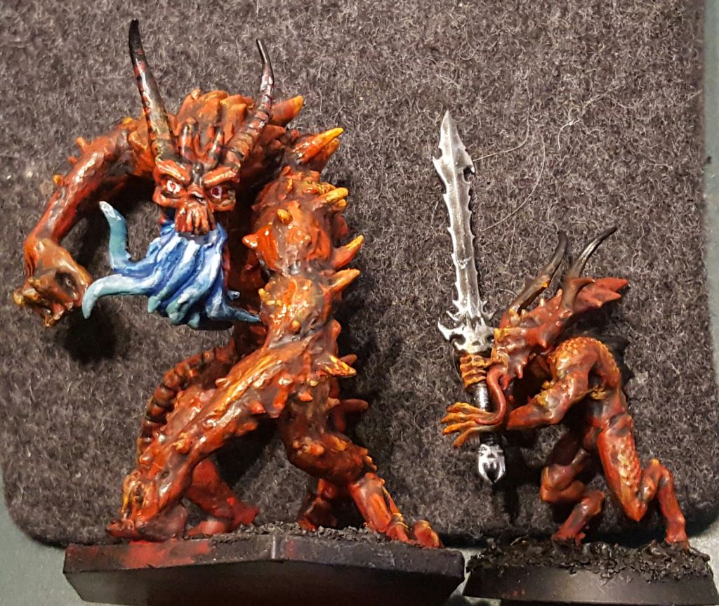 Ich hatte vor kurzem ja bereits erwähnt, dass ich "ein paar" (*hust*) Einheiten gebraucht gekauft habe damit meine Frau und ich mal zum spielen kommen. Meine Dämonen sollen erst bespielt werden wenn ich sie fertig bemalt habe. Hier also unsere erste Armeeaufstellung.