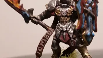 Auf meinem Malplatz kämpfen gerade ein Khorne Bloodthrone und ein paar Chaoswarrior gegen ein paar Rollenspiel- charaktere um die Vorherrschaft.