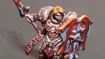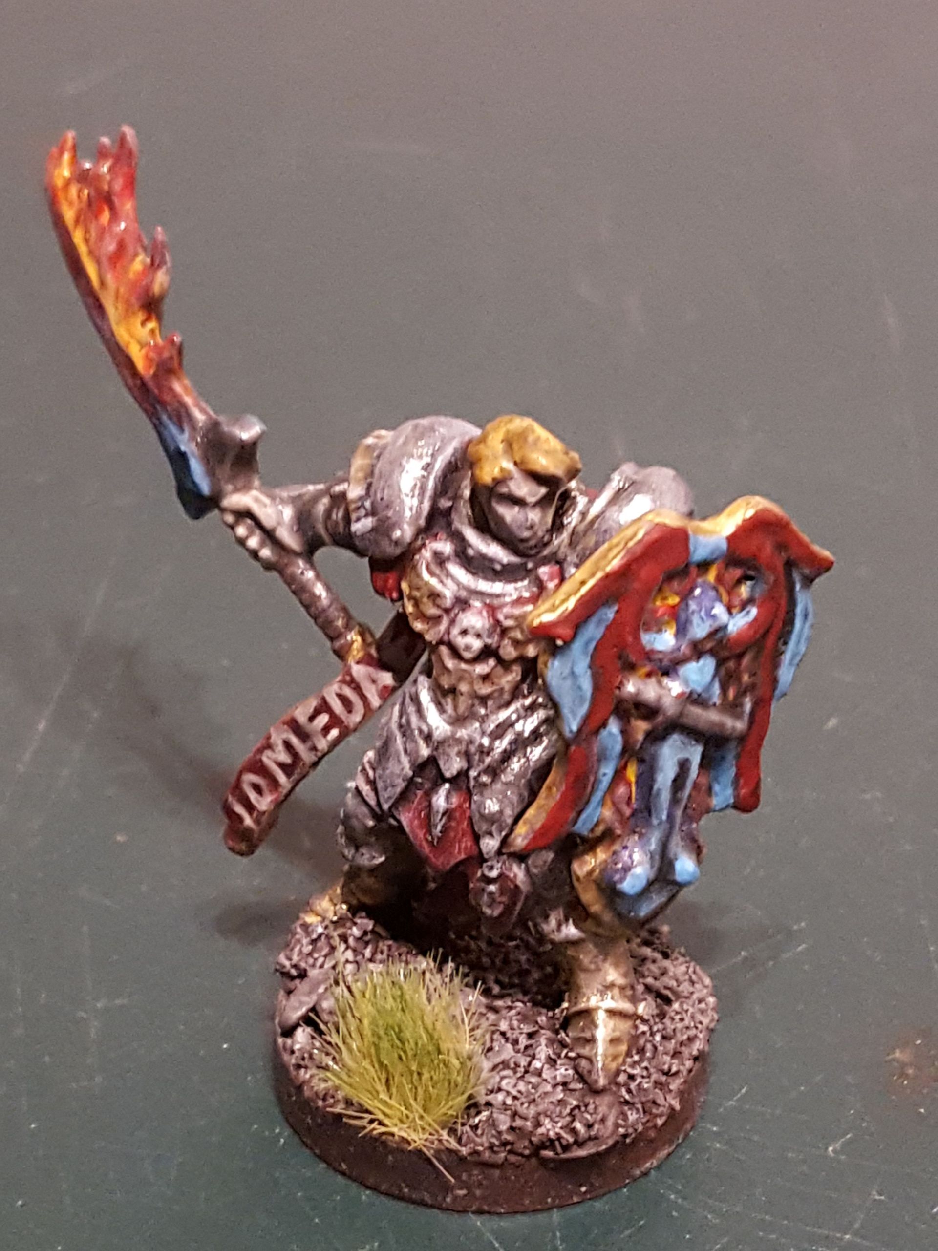 Dann folge ich jetzt mal der Einladung und zeige Euch Bilder eines Paladins. Ist ein Charakter aus meiner Pathfindergruppe. Die Miniatur soll der Spieler bekommen, wenn er das magische Schwert (Plotitem) gefunden hat.