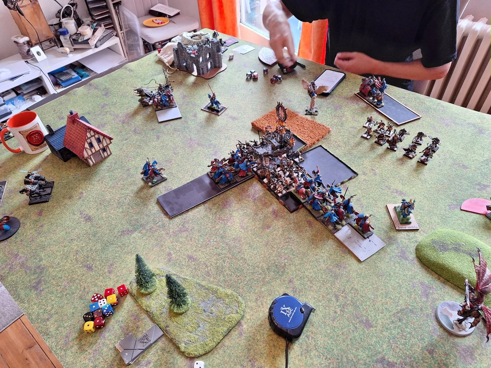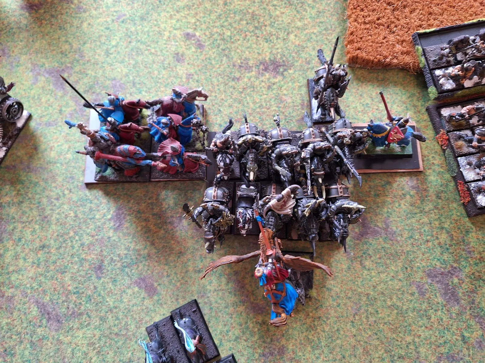 Und jetzt gehts ab. Die Realm Knights und meinen General(auf Pegasus mit der Kilerlanze) hatte ich dann zur Unterstützung des Fey Knights