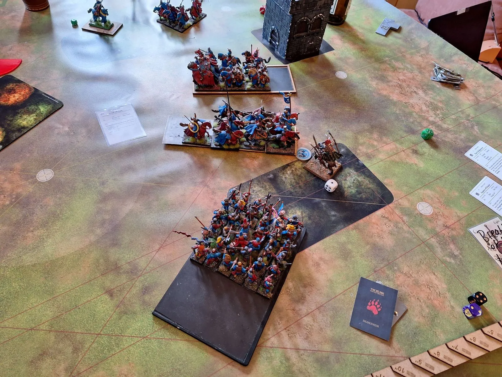 Die 30+ Barbaren mit Zweihändern und Schrein verpassten dann die 3 auf einem W6 in meine linke Reichsritterlanze.