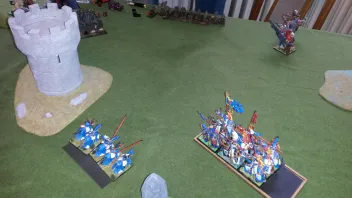 Die großen Reichsritter links und die kleinen rechts kriegen beide Streitwagencharges ab.