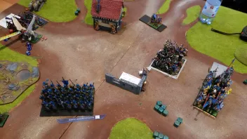 Als seine Bogenschützen dann nur zwei Bauern killen und die Landsknechte im Gegenzug 4 Spitzohren erschlagen,