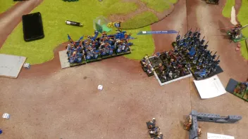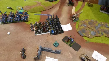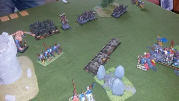 Ab der dritten Runde waren bereits alle seine Einheiten in Nahkämpfe verwickelt(bis auf ein oder zwei Speerschleudern)