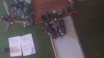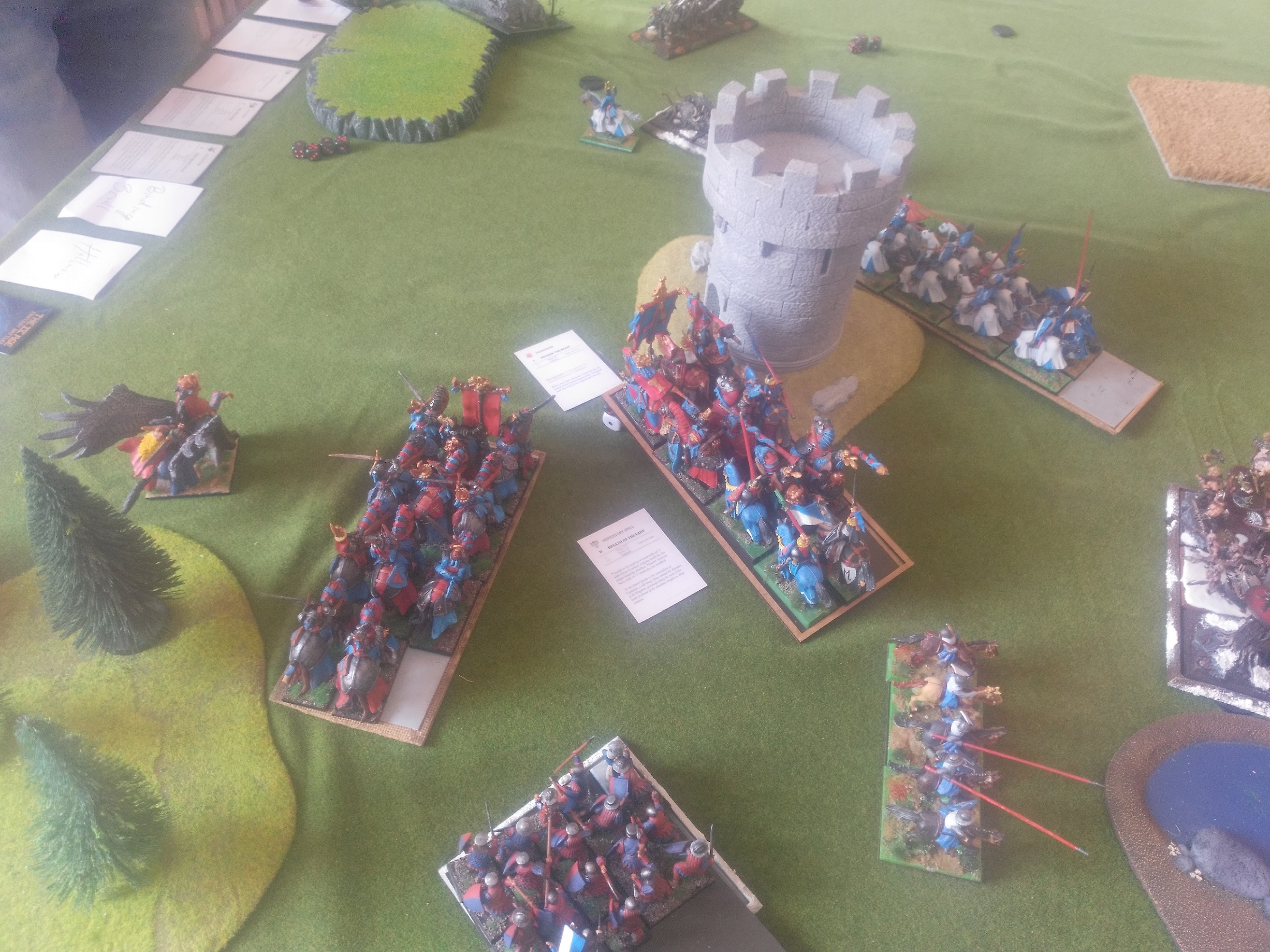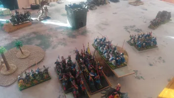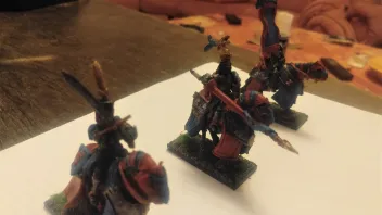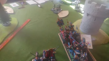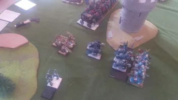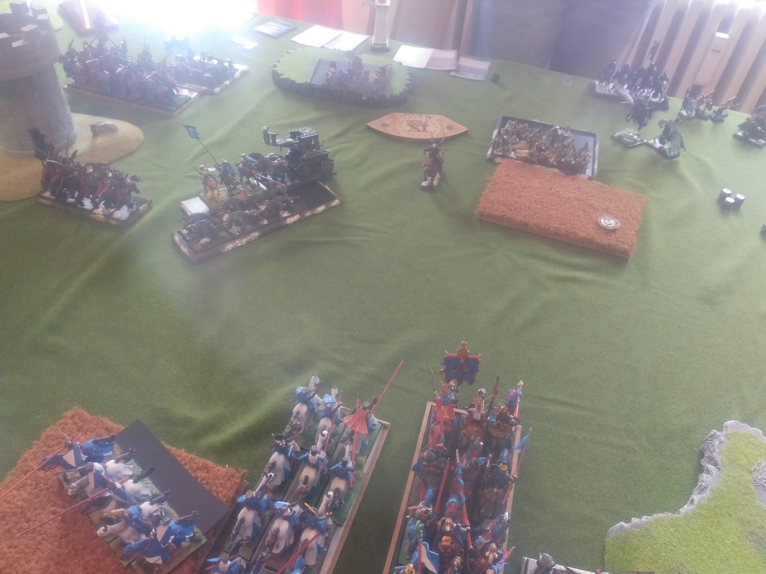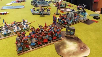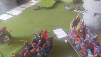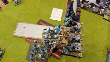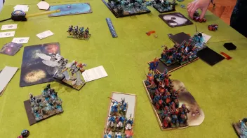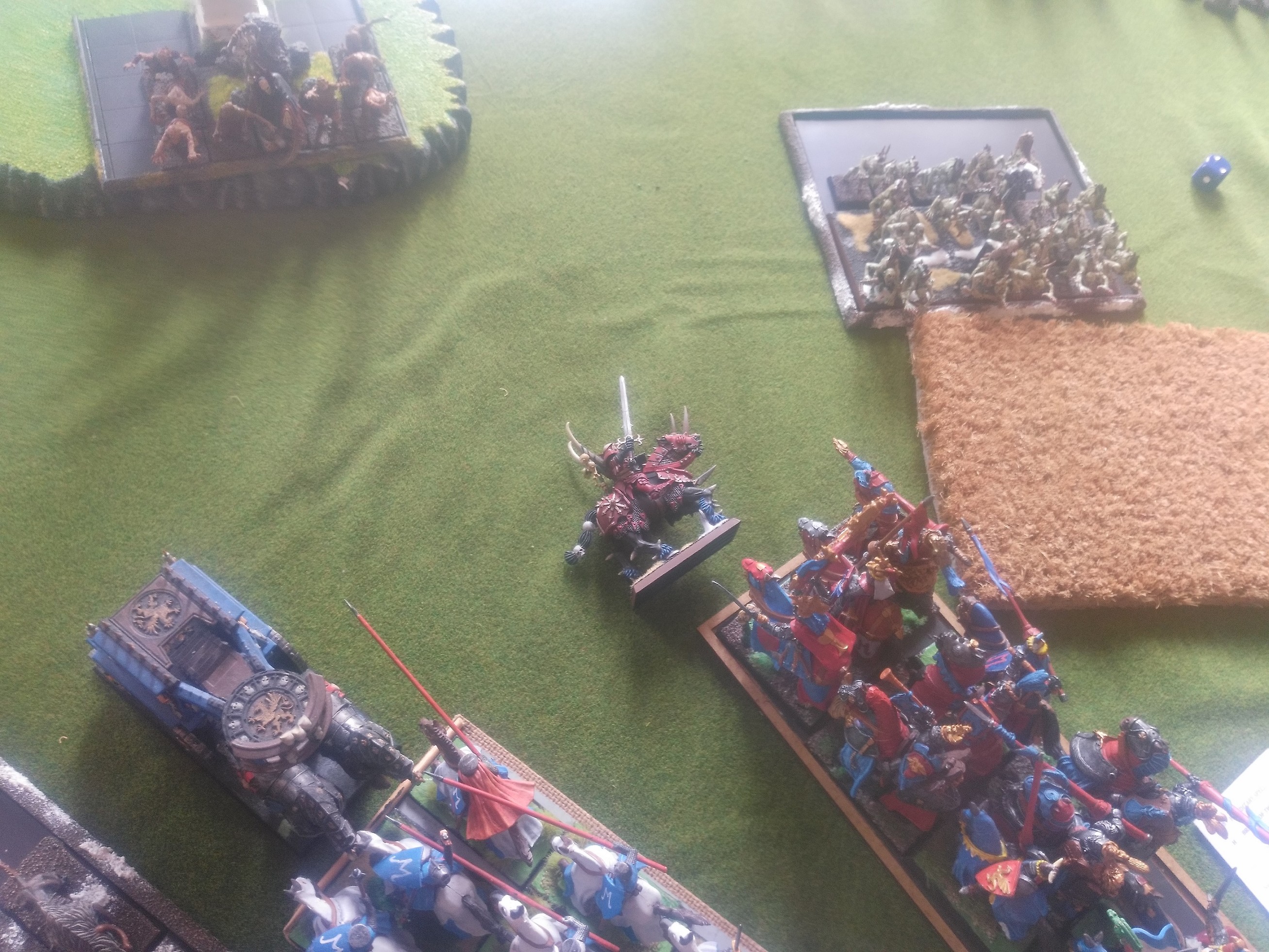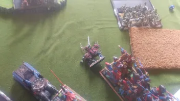 Linksaußen belauern sich meine zweite RdK-Lanze und seine drei Streiwagen- wer den Angriff schafft, gewinnt.
