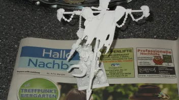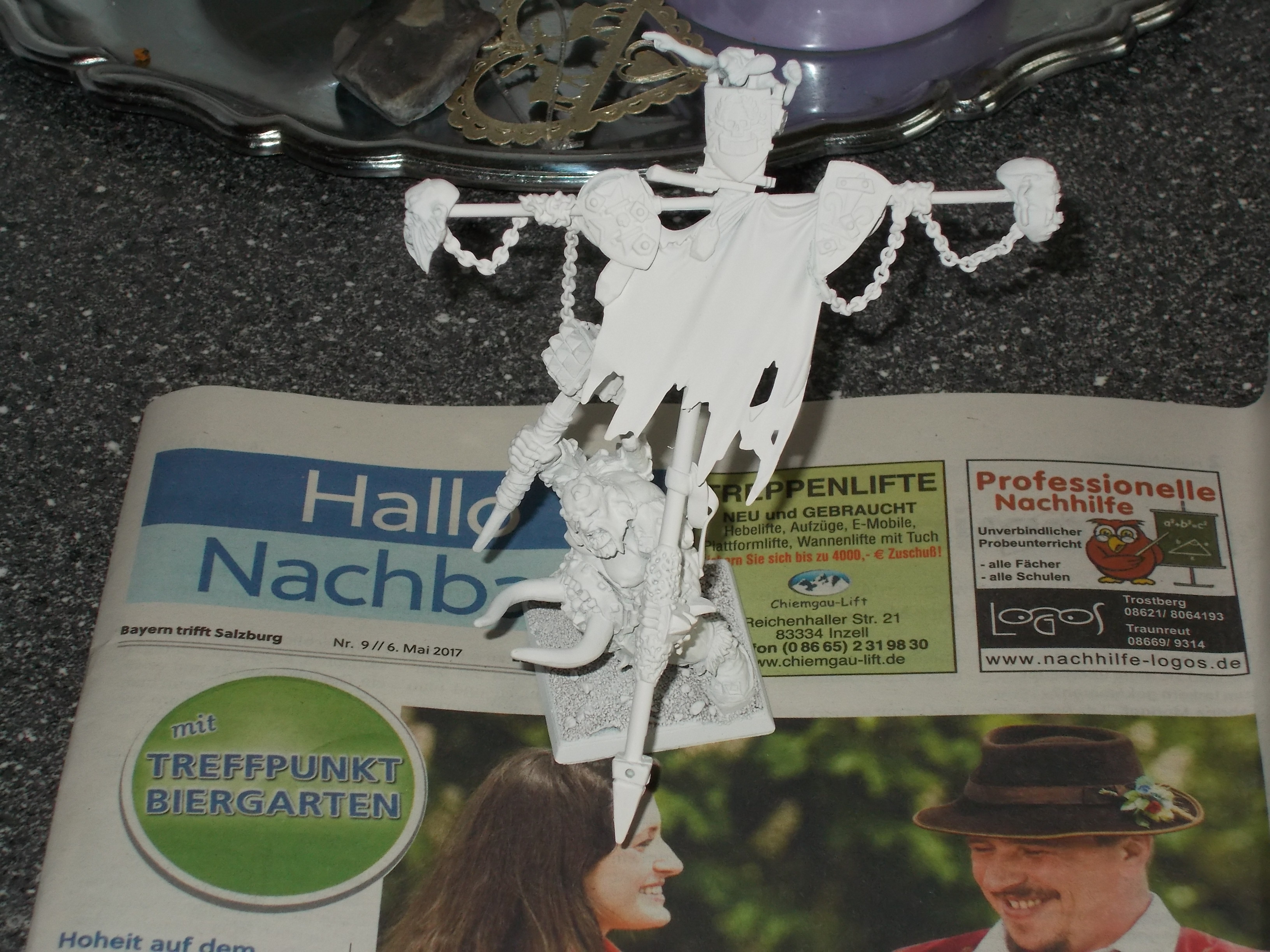Aktueller Status ... eh klar, noch extrem viel WIP dabei. Die Haut ist nur Grundton plus Ink, die Hose und Schuhe sind nur Grundton, genauso wie der Standartenschaft ausser Grundton noch gar nicht angefasst wurde.