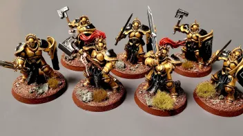 Die haben mir etwas Kopfzerbrechen bereitet, bis ich die Verzierungen der Rüstungen nochmal übermalt hab. Davor war nicht nur die Maske golden, sondern alles.