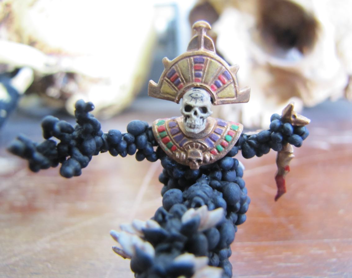 Unter blutendem Herzen mussten dann noch die Skarabäen sowie der Pharaonen-Oberkörper vom Sphinx-Bausatz verwendet werden, die rechte "Hand" ist eine Klaue aus der Verstoßenen-Box und der Dolch ist ein Klanrattenschwert...