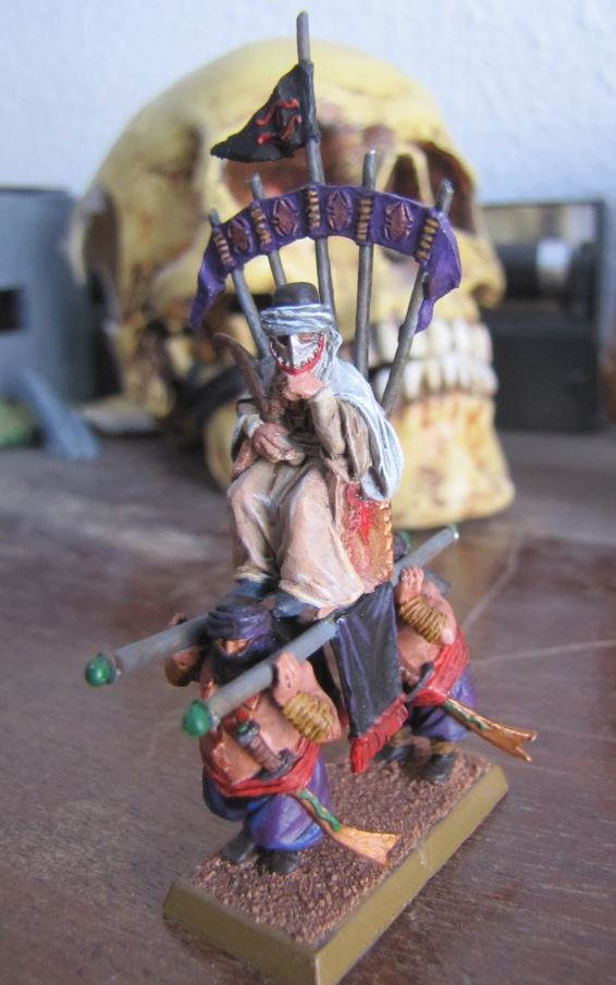Der Imam erhält +1 auf den Rüstungswurf und +1 LP. Der Imam und die Sänfte werden als ein Modell behandelt und die Sänftenträger profitieren nicht von magischen Gegenständen des Imams.
