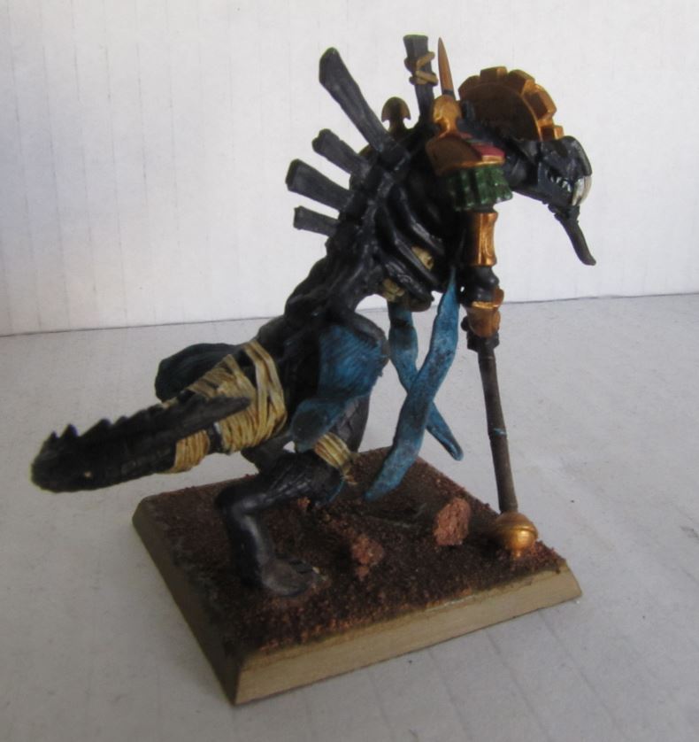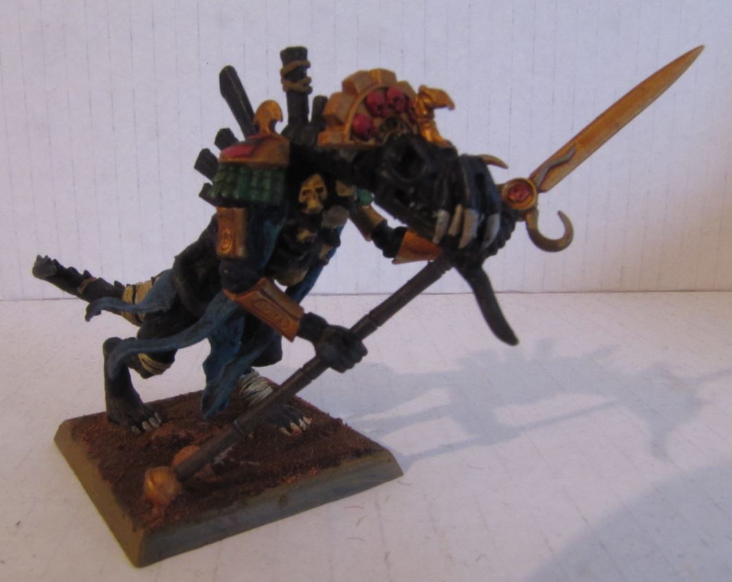 Der Oberkörper (inklusive Kopf) ist vom Katapult, der Kopfschmuck vom Riesenbogen des Stegadons, die Arme von den Grabjägern und der Hersteller des Unterkörpers wird selbst noch gesucht (der Oberkörper davon wurde am Nekrolith-Kolloss verbaut und irgendwie kommt bei dem Vieh immer Wild West Exodus in den Kopf, aber keine Ahnung ob es davon war)...