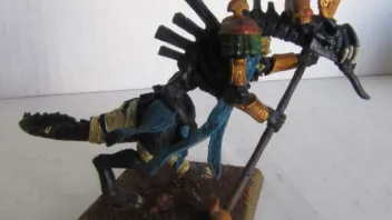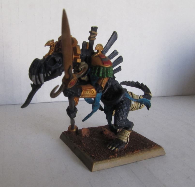 Der Oberkörper (inklusive Kopf) ist vom Katapult, der Kopfschmuck vom Riesenbogen des Stegadons, die Arme von den Grabjägern und der Hersteller des Unterkörpers wird selbst noch gesucht (der Oberkörper davon wurde am Nekrolith-Kolloss verbaut und irgendwie kommt bei dem Vieh immer Wild West Exodus in den Kopf, aber keine Ahnung ob es davon war)...