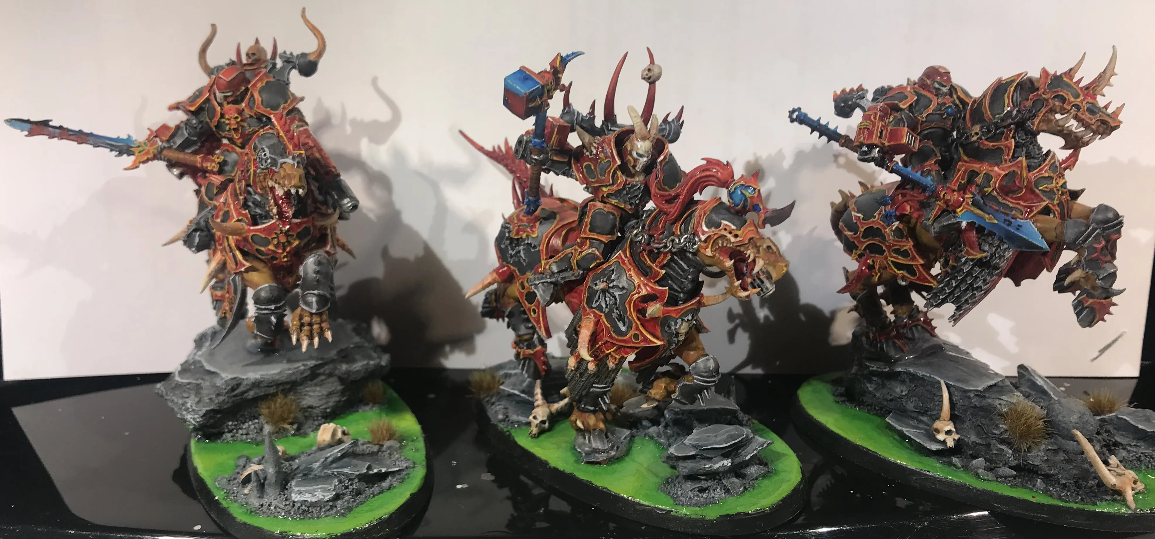 - Bei deinen bikern sieht sich alles zu ähnlich (gut, das ist wohl doch Kritik, aber nett gemeint *g*), das war bei meinen Varanguards auch der Fall. Ich hab dann (soweit ich mich erinnern kann) Reiter und Reittier in unterschiedlichen Farbtönen bemalt. Einfach weil die so viele kleine Flächen und Kanten haben.