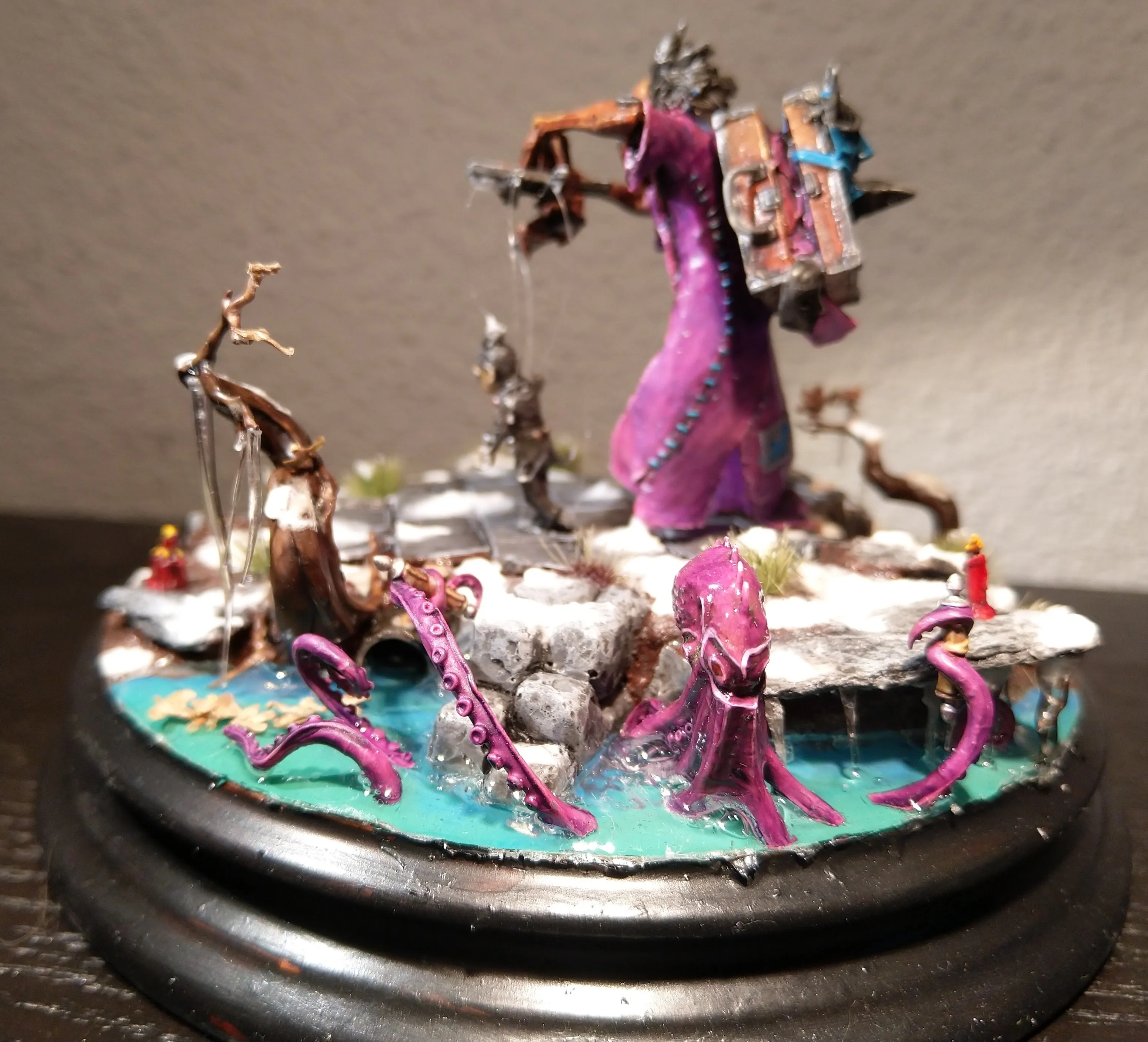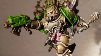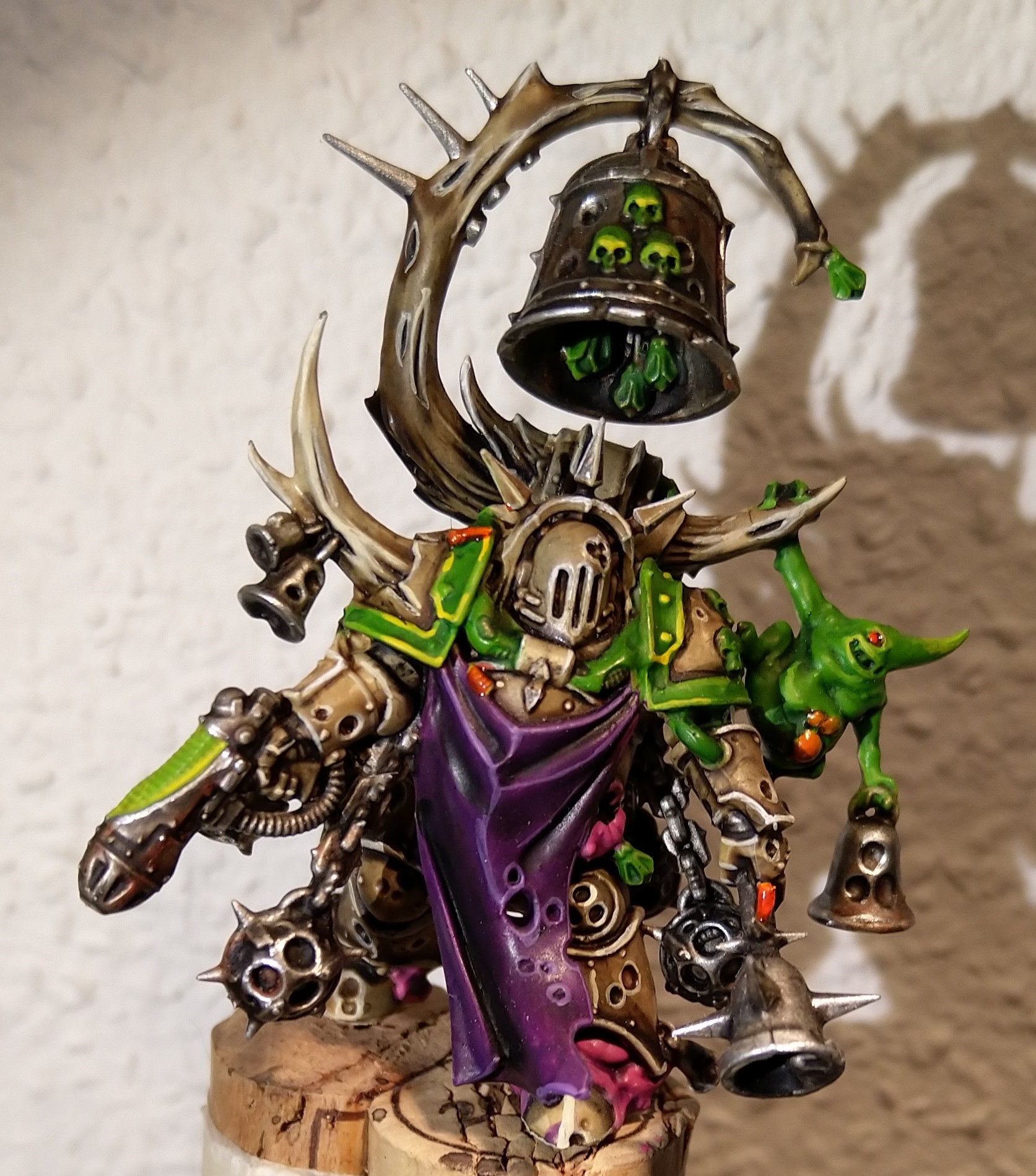2.) Irgendwie finde ich, der Nurgling passt farblich nicht so ganz dazu. Das Modell selbst wirkt sehr hell. Der Nurgling dagegen dunkel, matt und dreckig. Es macht auf mich den Eindruck, dass er aus einer anderen Armee mit einem anderen Farbschema kommt. Aber das ist meckern auf ganz hohem Niveau. Wie gesagt: Der ist Top.