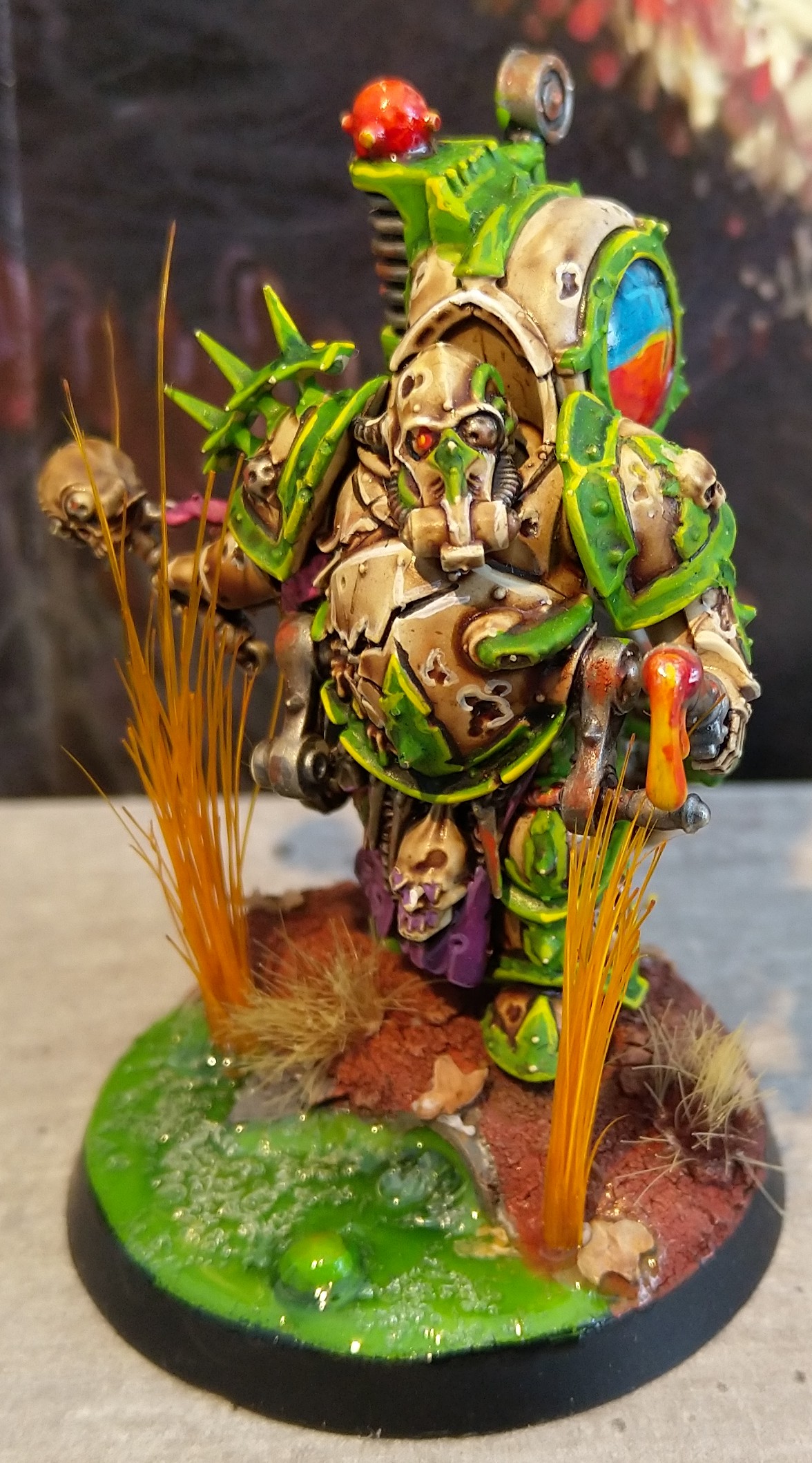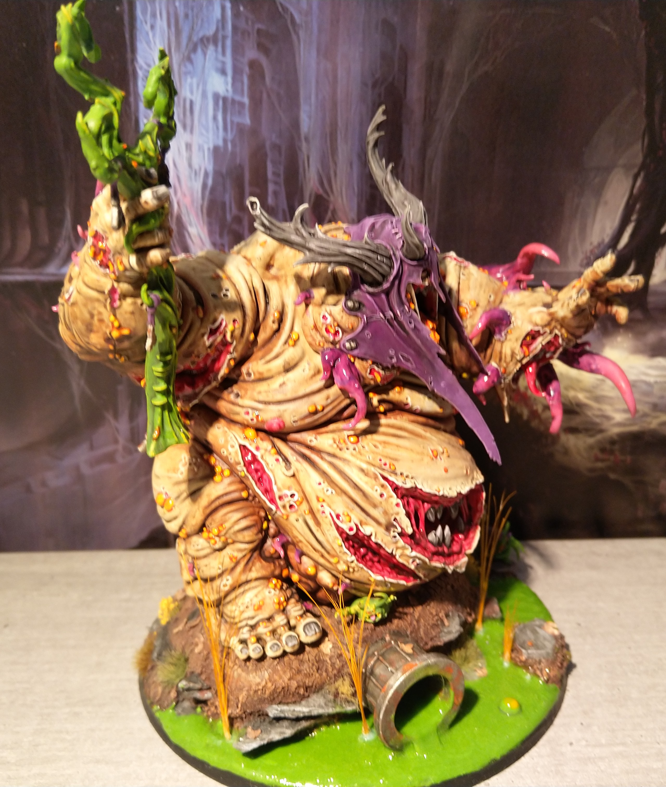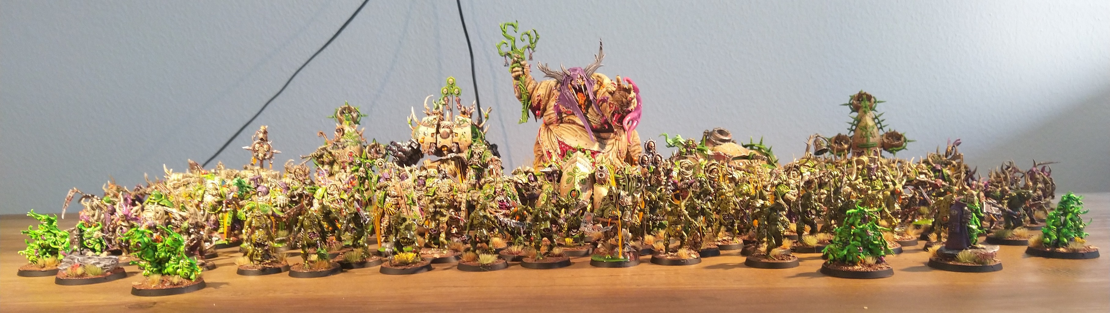 Hab mich beim Aufstellen schöne Burg gebaut, damit er in die Plaguebearer muss (schockt gerne mit den harten Jungs) und ich im nächsten Zug mit den Granatentrick ihn weghauen kann.