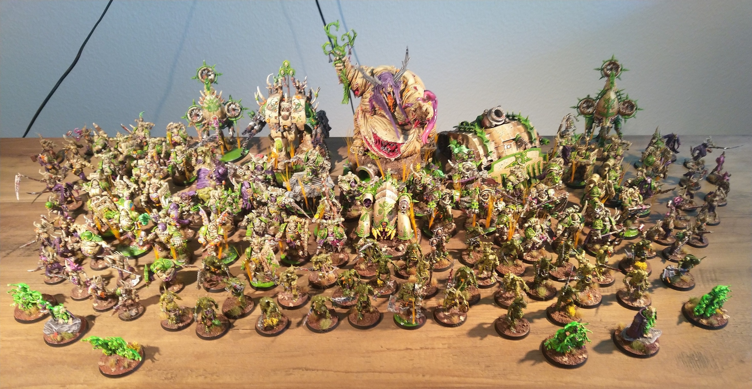 Bin echt zufrieden mit meiner Liste, hat gut Fieldcontrolle, kann aber auch gut Aua machen mit Levi, Plaguemarines und den 3 Psioniker und hat viel Leben mit den Plaguebearer.