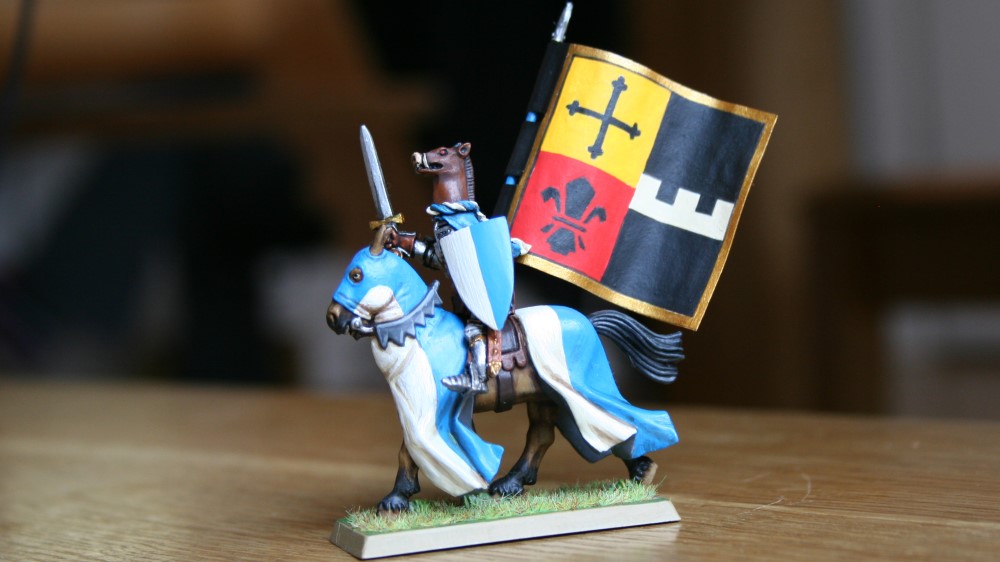 Fürs Foto trägt der Marquis de Lusignac es erstmal zur Schau. Für die Schlacht bin ich mir aber noch nicht sicher wem die Ehre zuteil wird das Banner des Burgherrn zu führen.