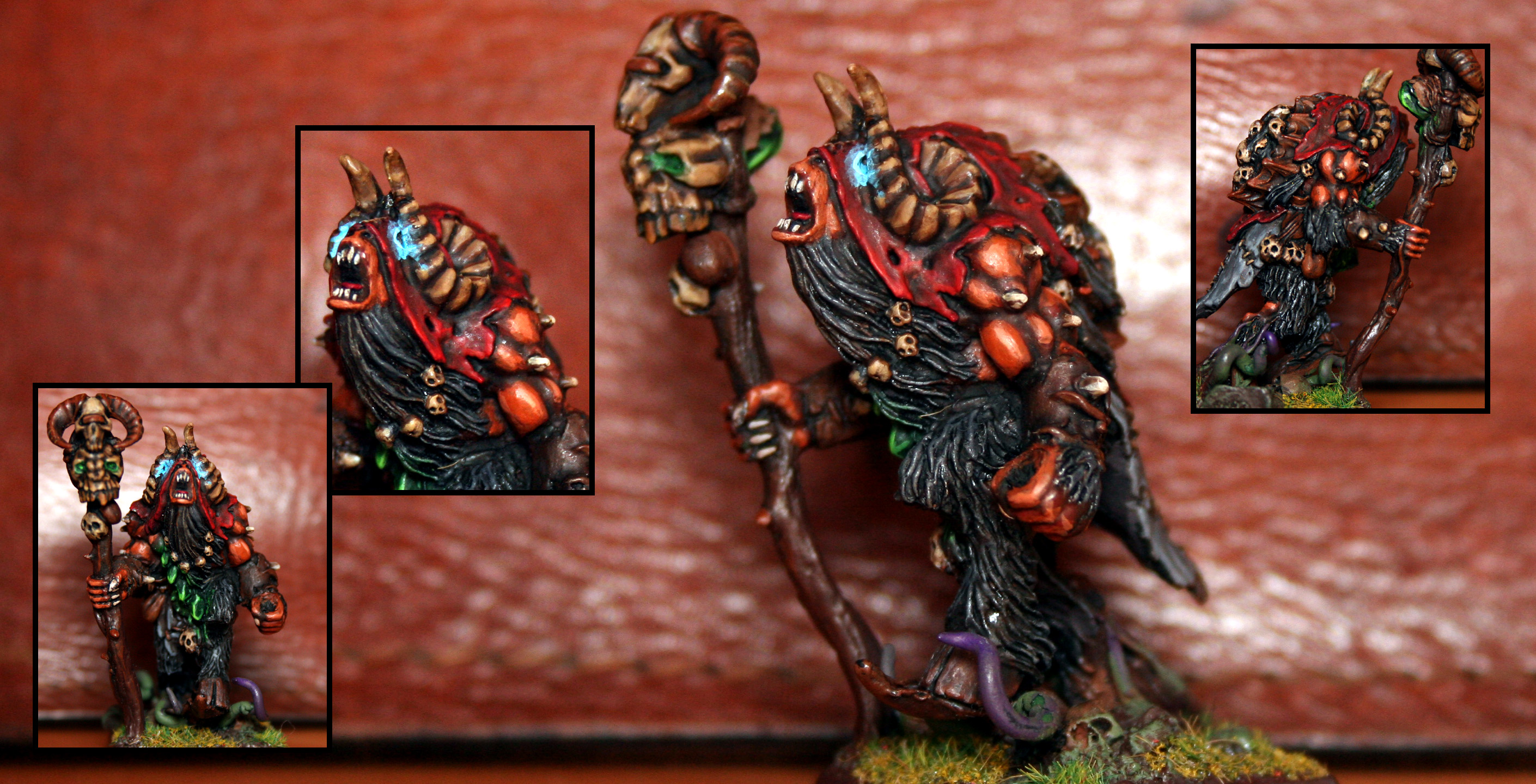 Bisher weiß ich, dass ich nicht allein gegen die Zwerge und das Imperium ran muss. Klar ist aber noch nicht ob mein(e) Mitstreiter einen Teil der Herde führen oder ob noch ein anderes Volk mit den Tiermenschen antreten wird. Pauschal habe ich erstmal mit einer reinen Tiermenschen Großherde geplant, welche die 5000 Punkte allein auf den Tisch bringt. Es gibt verschiedene Konzepte, mit je vier Charaktermodellen. Da nach Reich des Chaos Regeln jeder Charakter sein eigenes Gefolge hat, könnten also bis zu drei Leute neben mir stehen und ihre eigene Teilherde anführen. (Das wird ein Chaos werden!